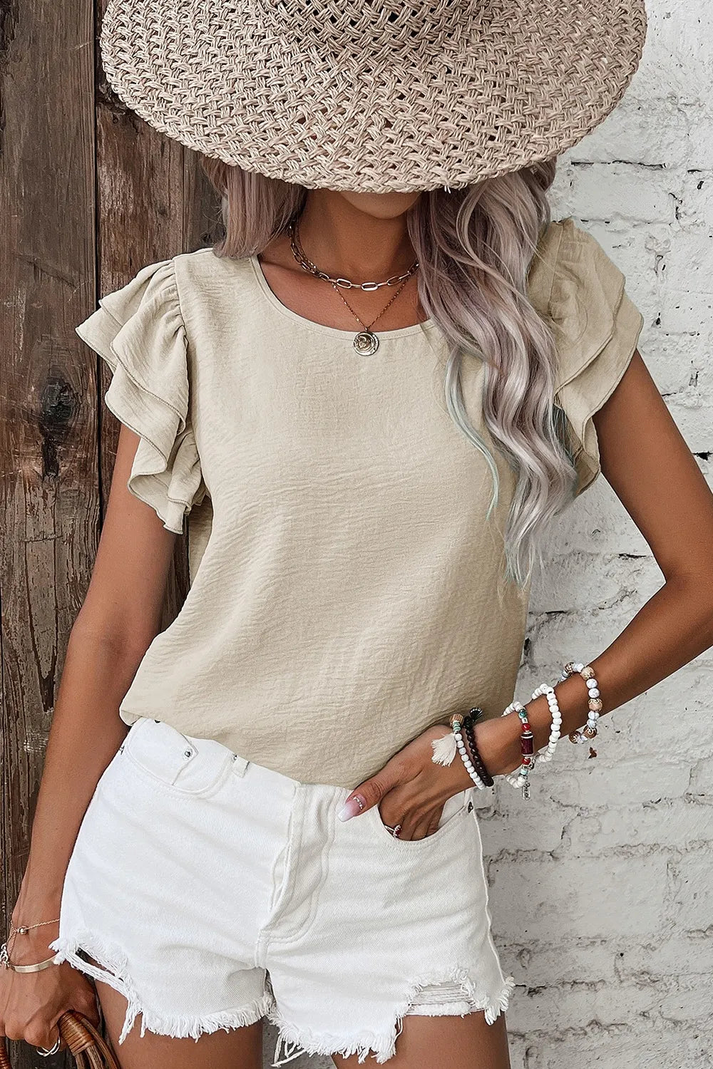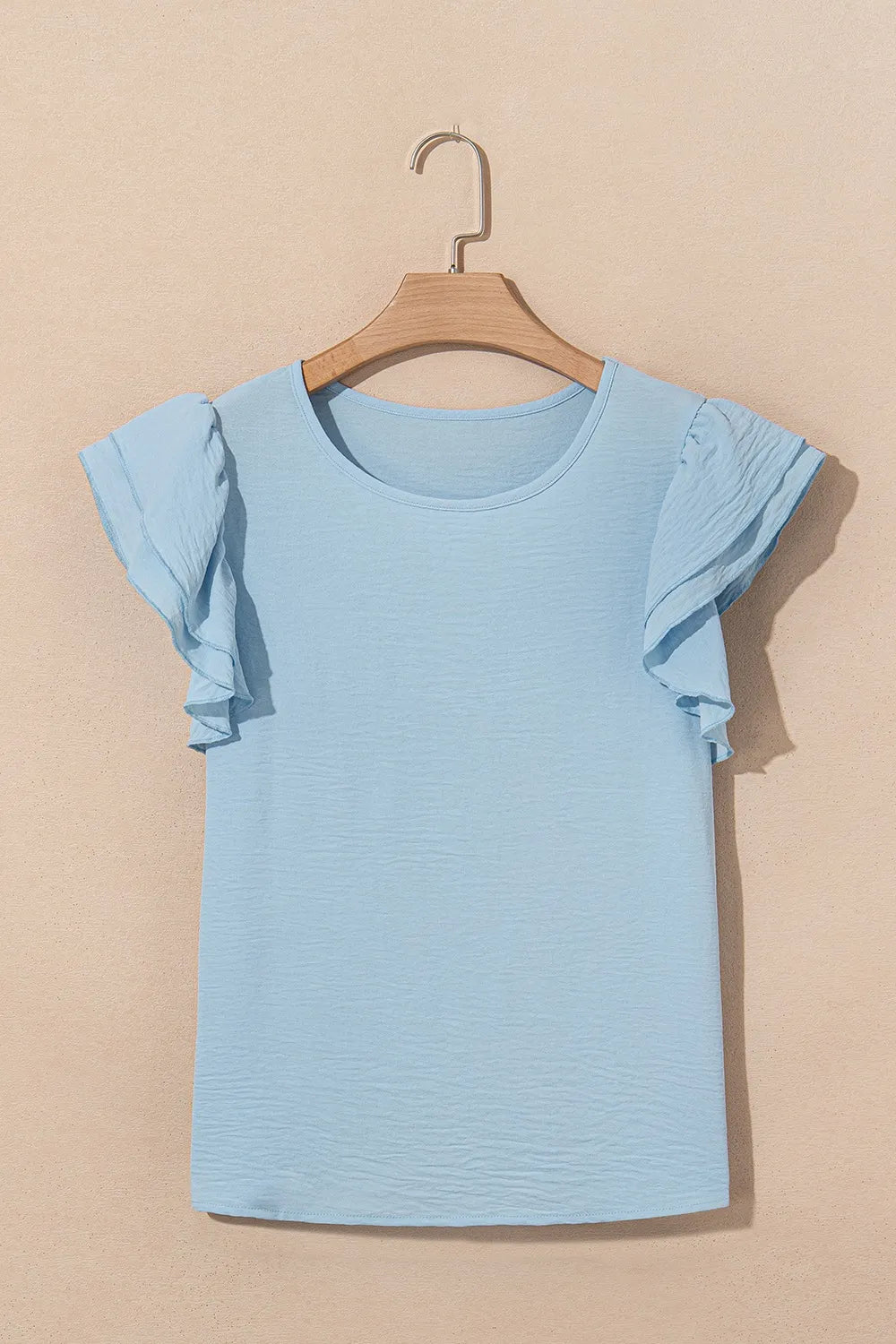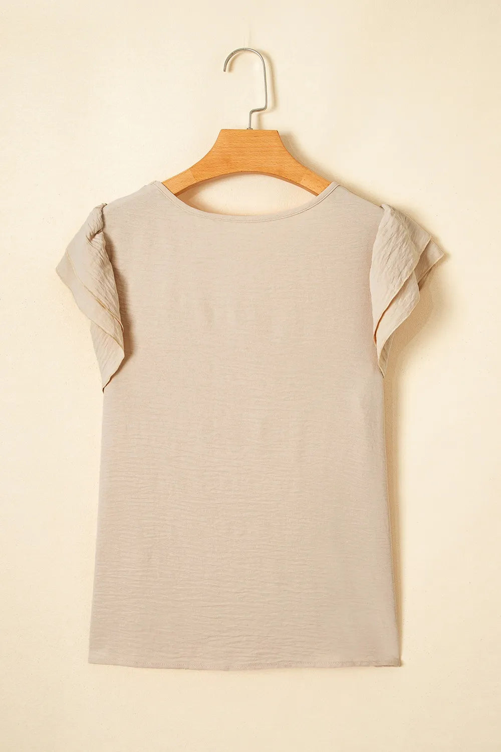 Solid Color Ruffled Short Sleeve Casual Blouse