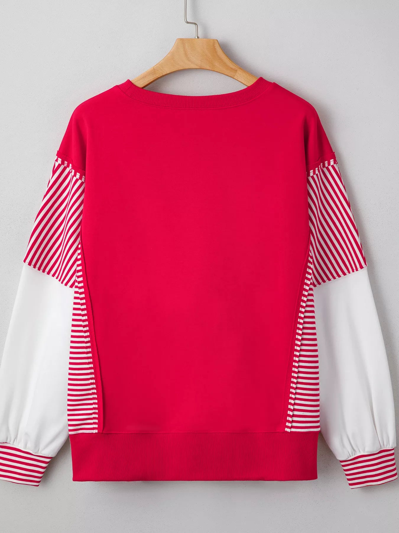 Striped Patchwork Sleeve Colorblock Sweatshirt