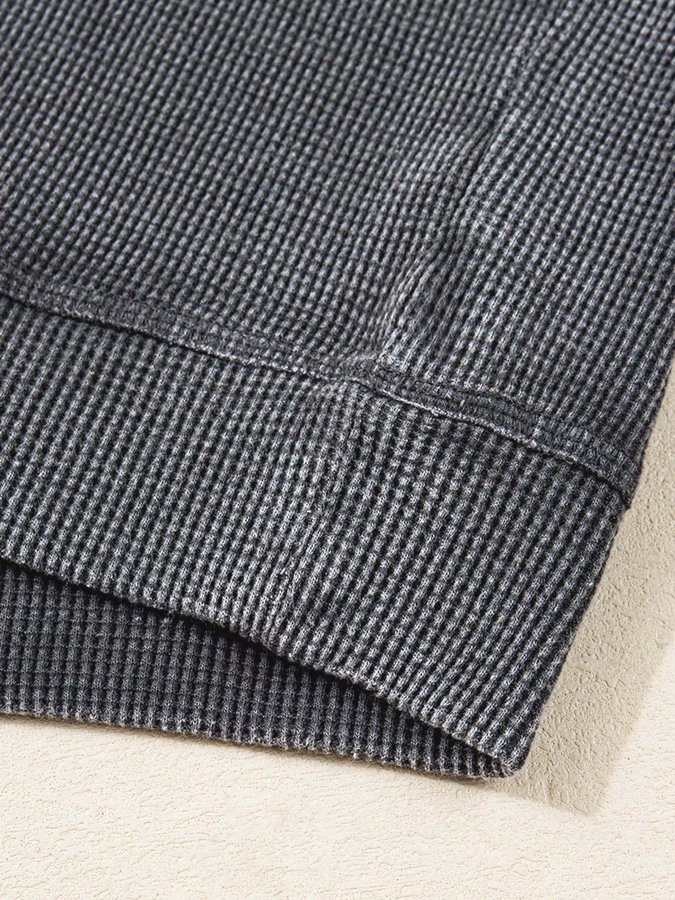 Waffle Knit Patchwork Long Sleeve Loose Sweatshirt