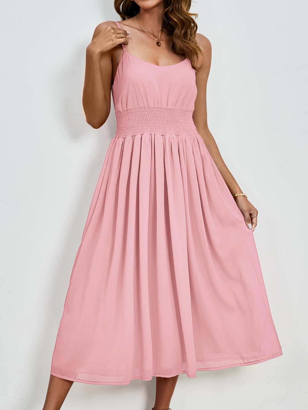 High-Low Printed V-Neck Cap Sleeve Midi Dress
