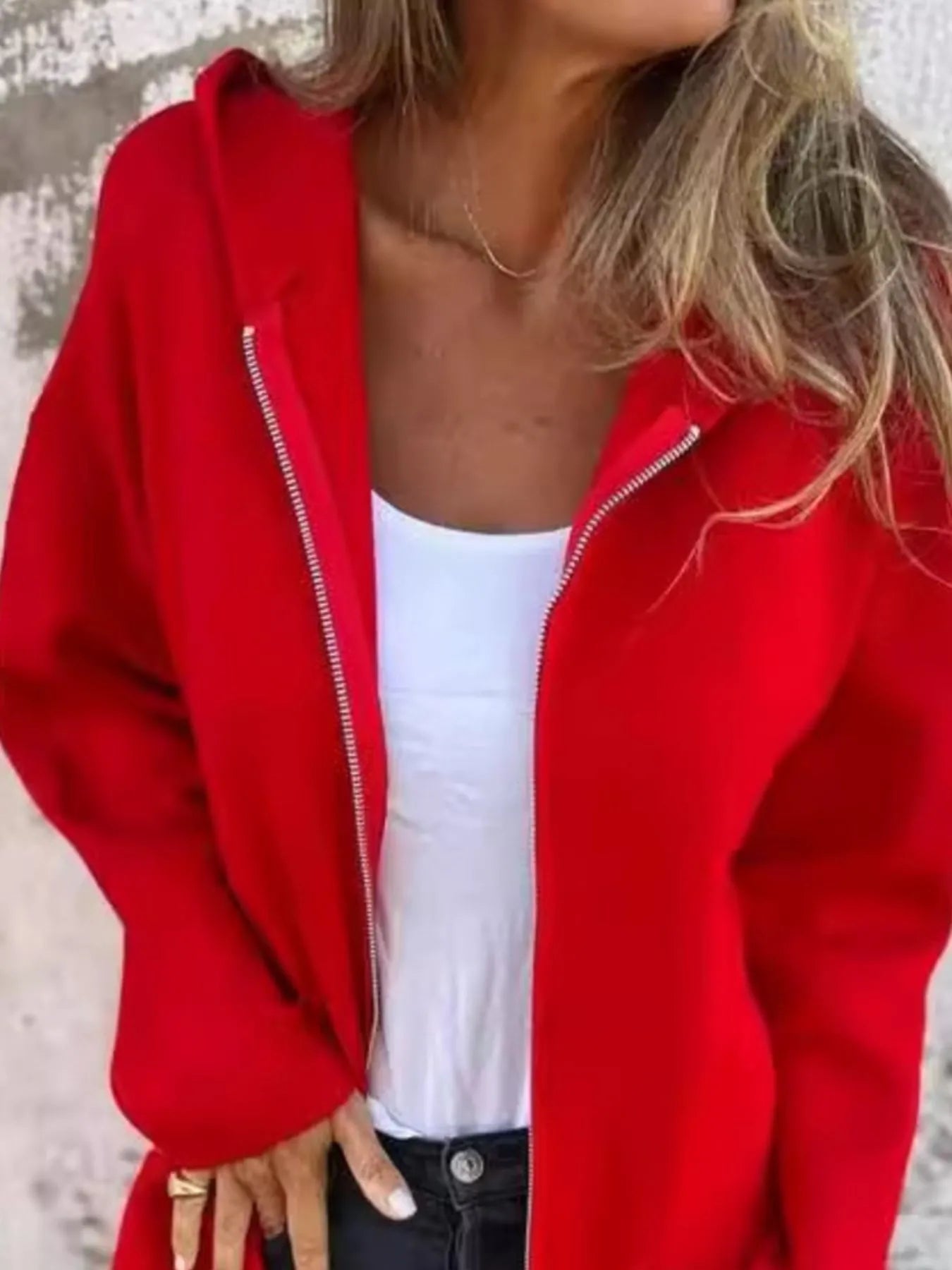 Full Size Zip Up Long Sleeve Hooded Outerwear Plus Size