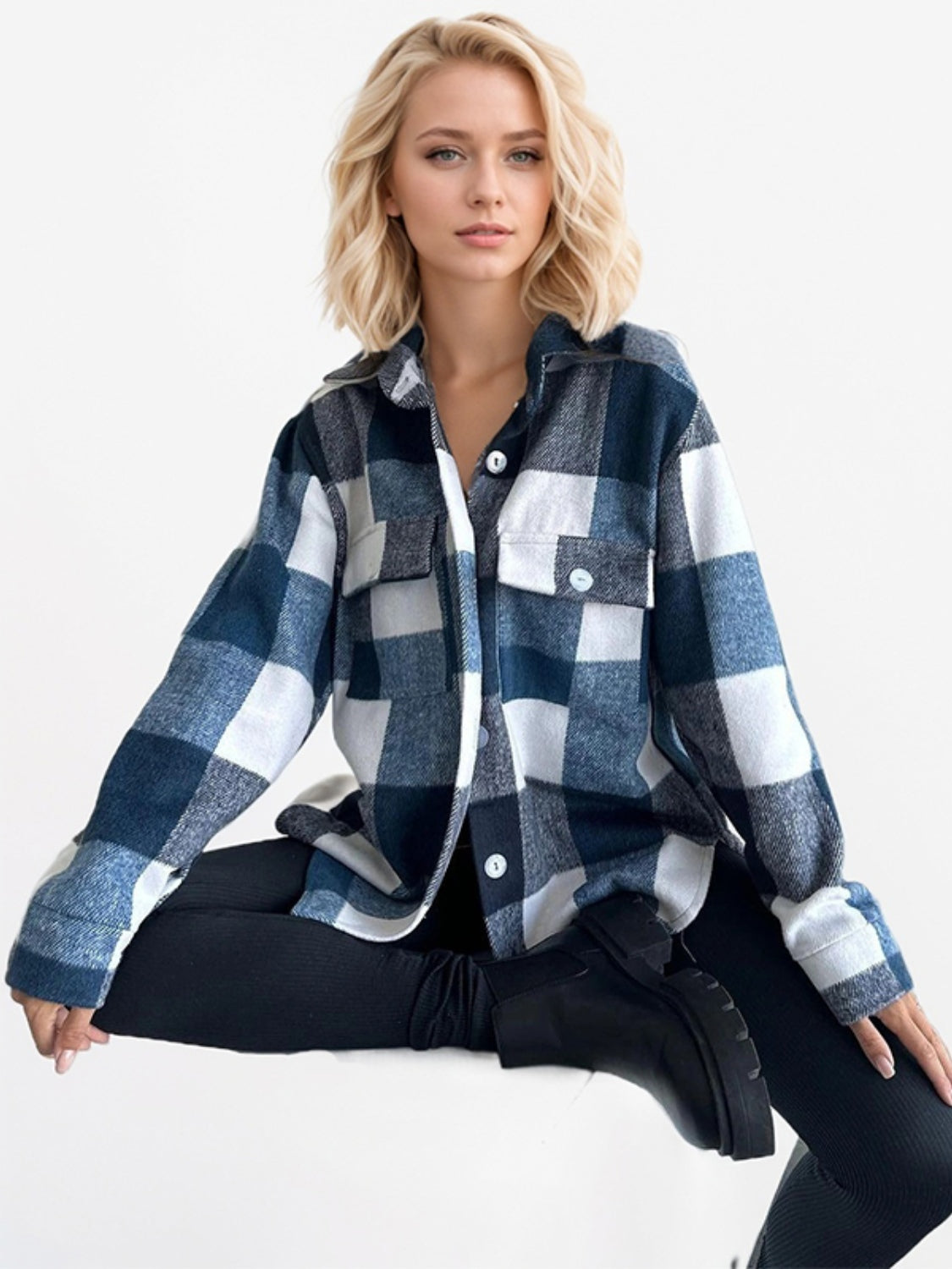 Plaid Button Up Long Sleeve Shacket