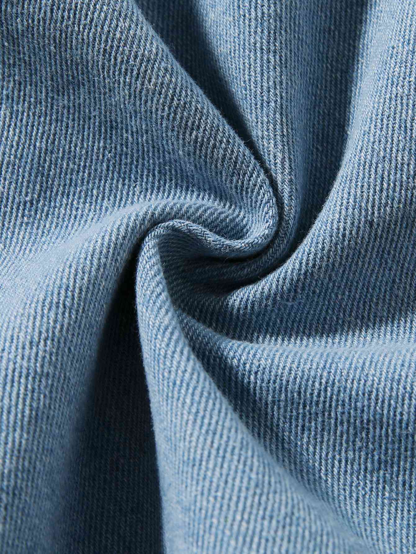 Butterfly Graphic Top and Belted Denim Shorts Set