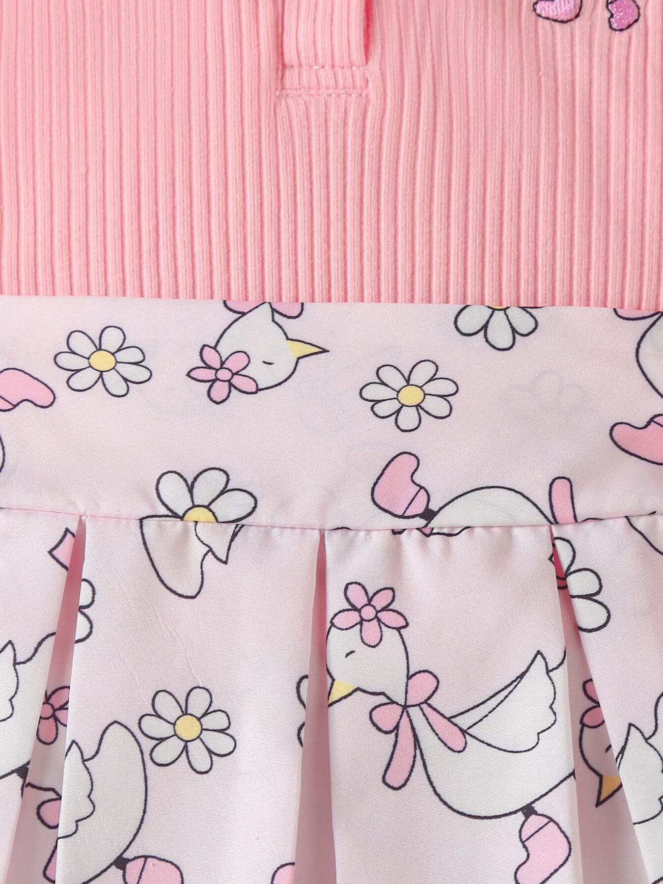 Children's Embroidered Ribbed Polo Shirt & Pleated Skirt Set