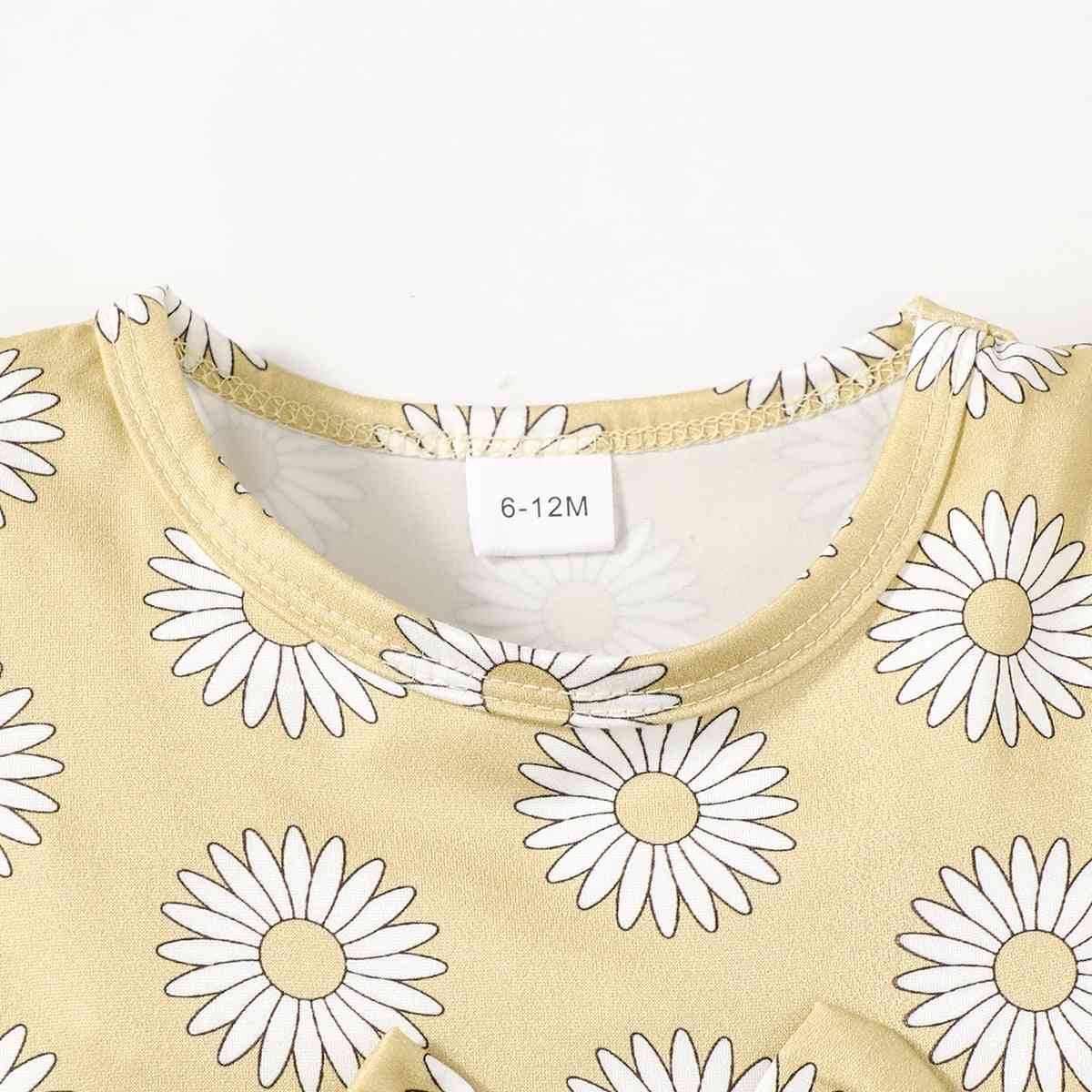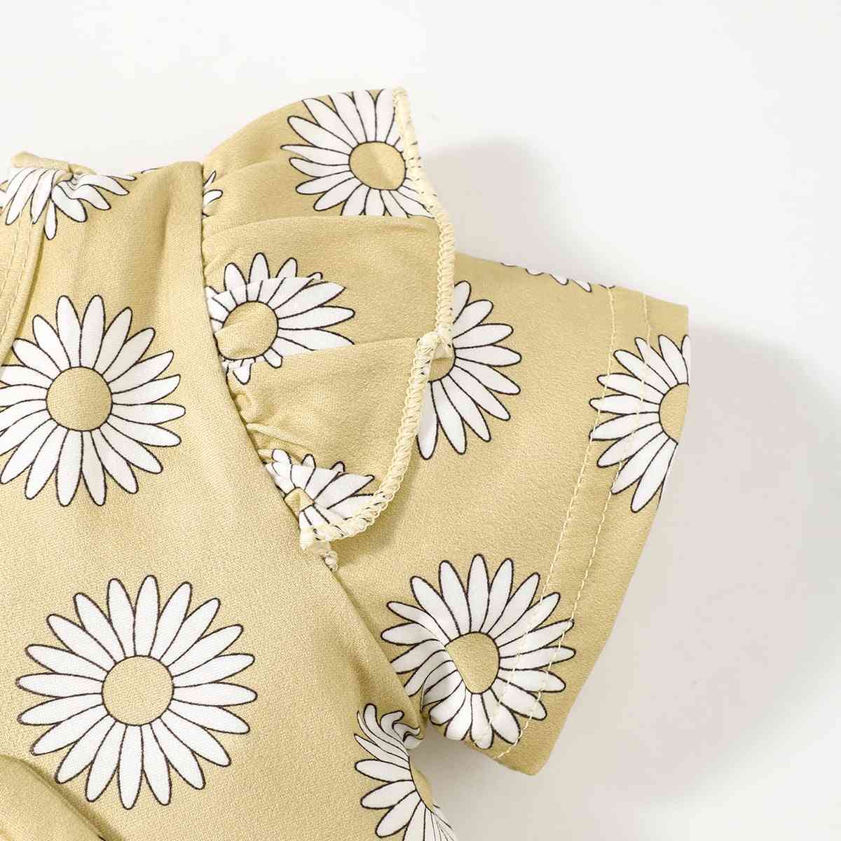 Floral Ruffle Shoulder Babydoll Top and Jeans Set