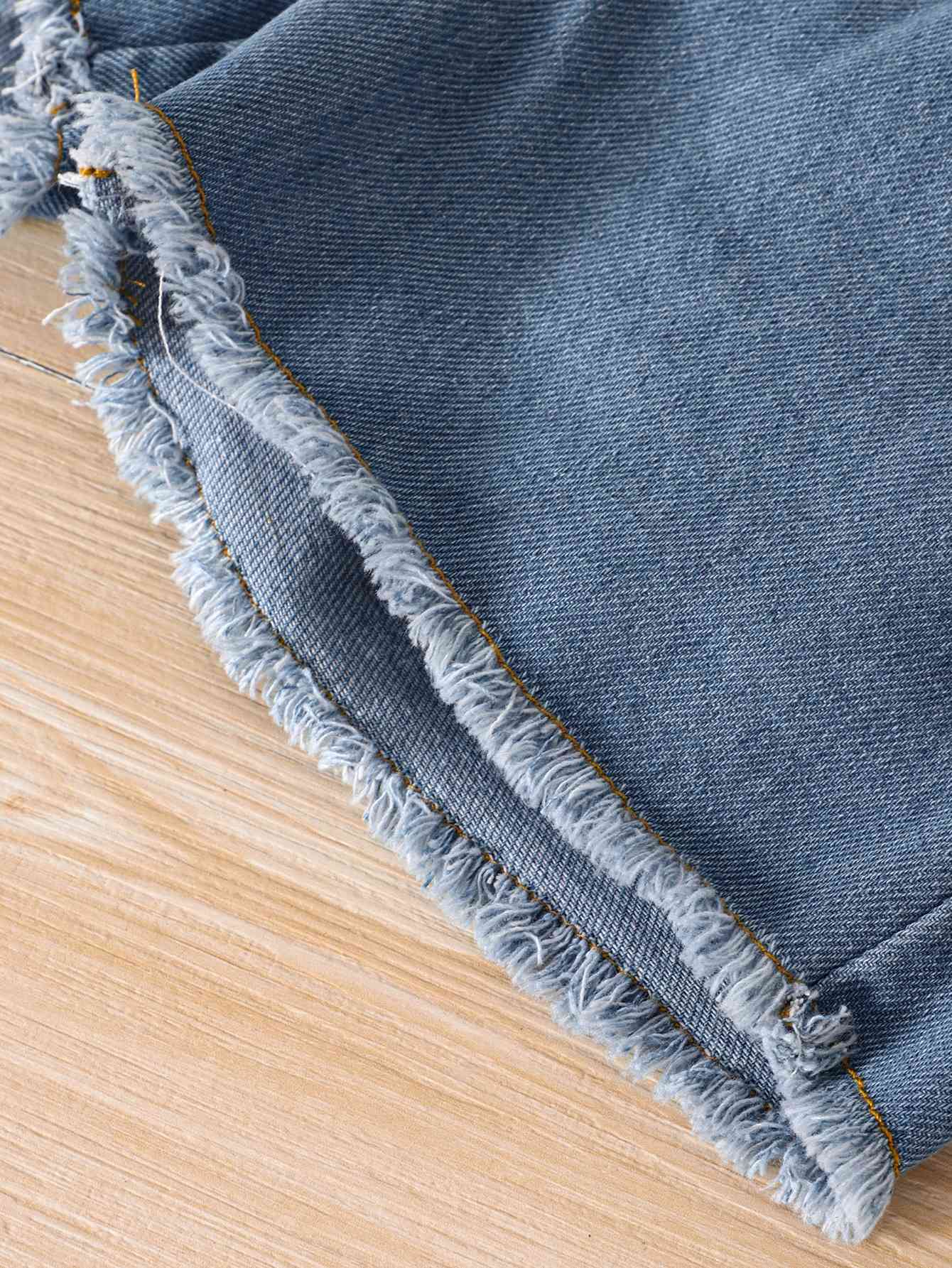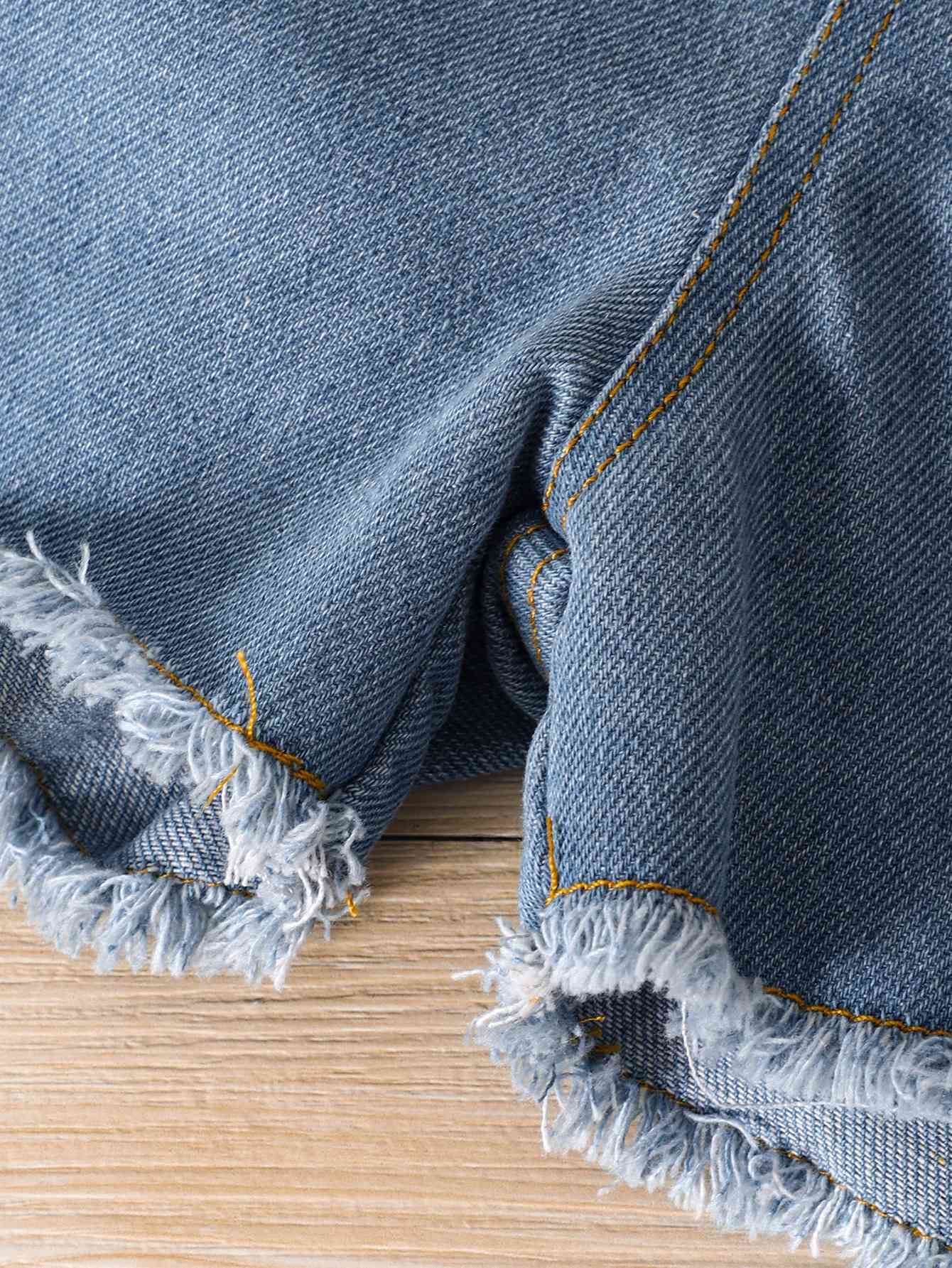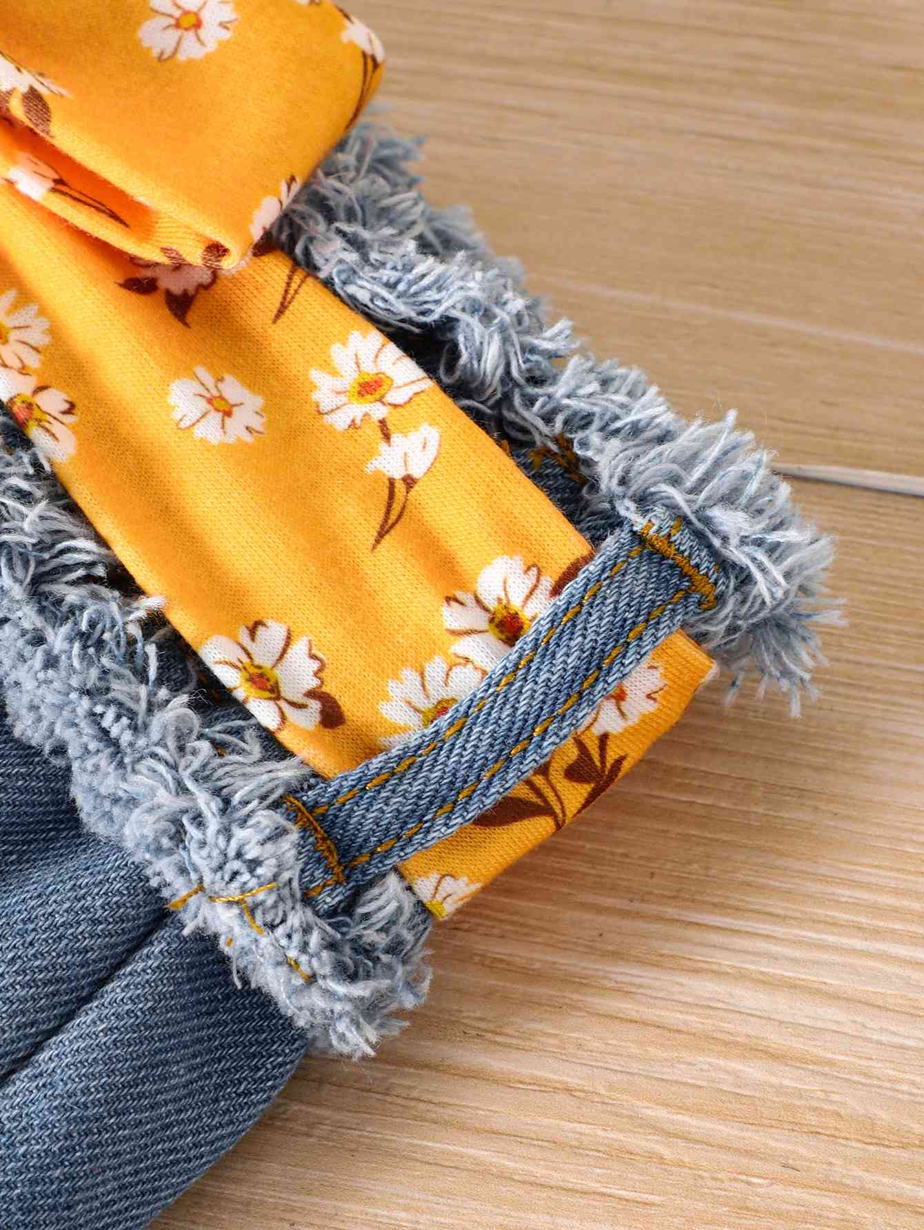 Girls Floral Cami and Belted Denim Shorts Set