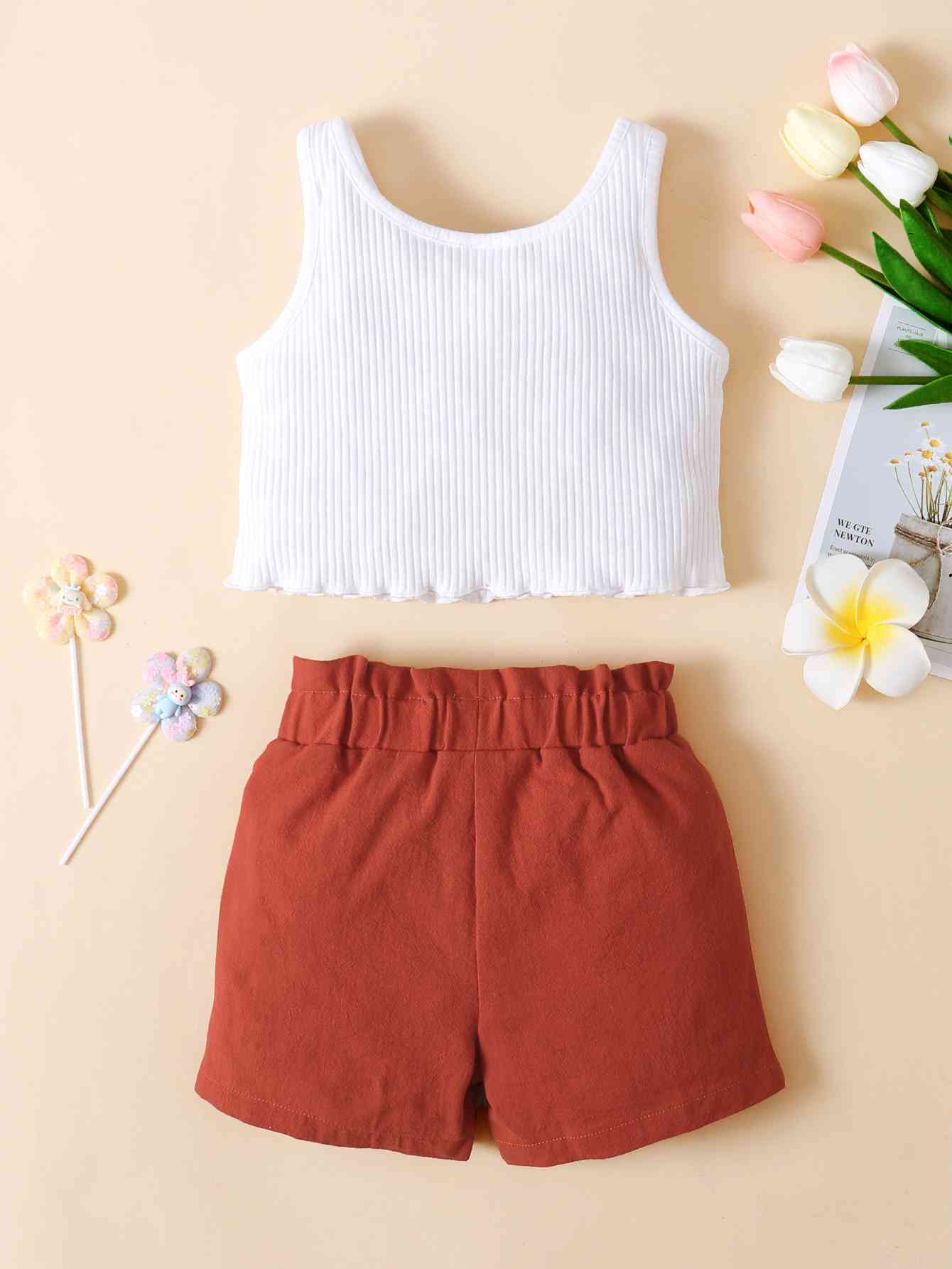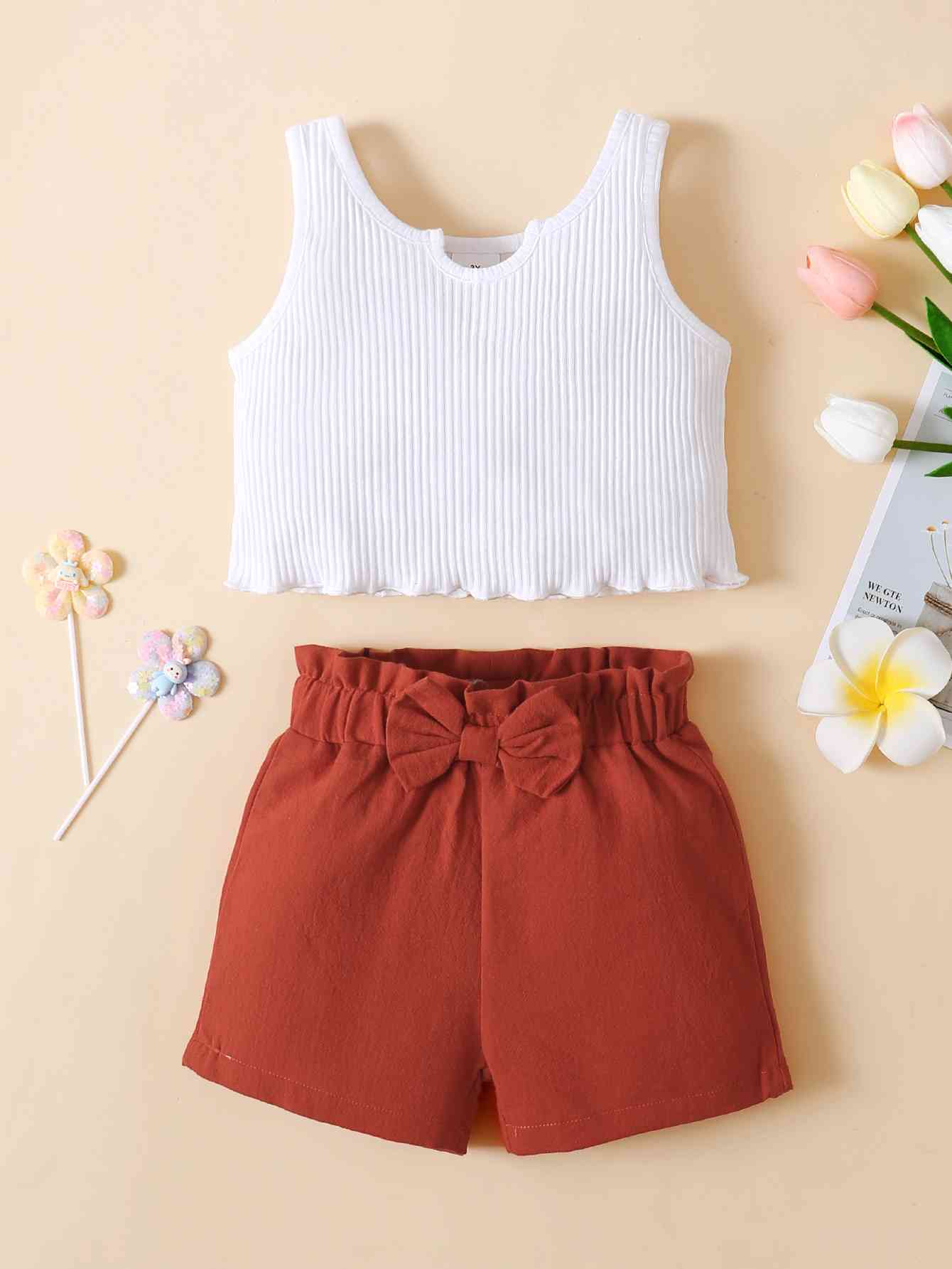 Girls Ribbed Notched Tank and Bow Detail Shorts Set