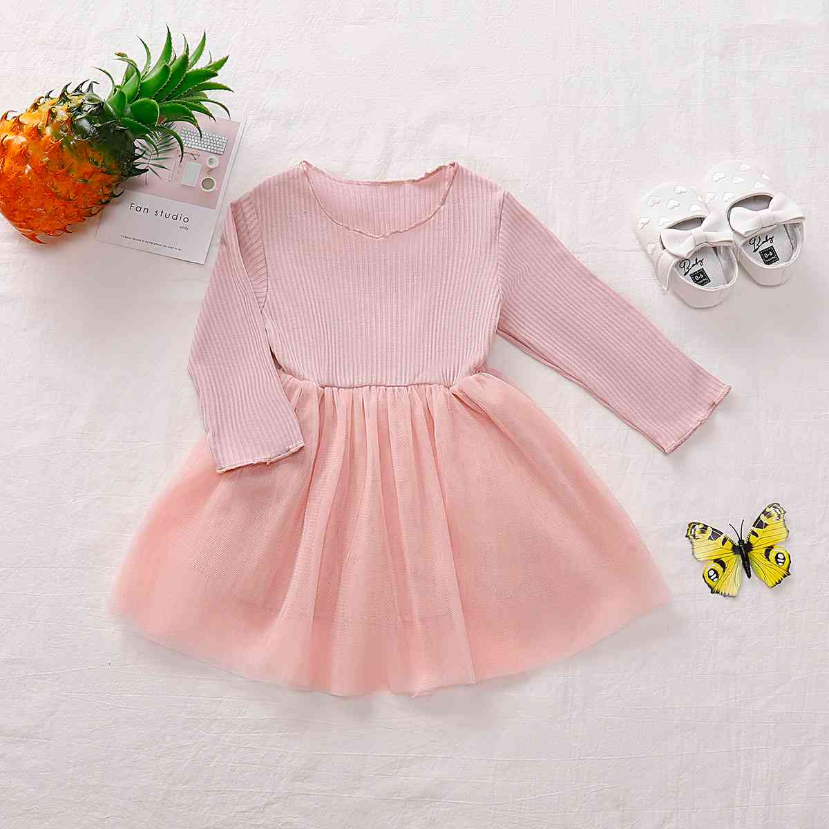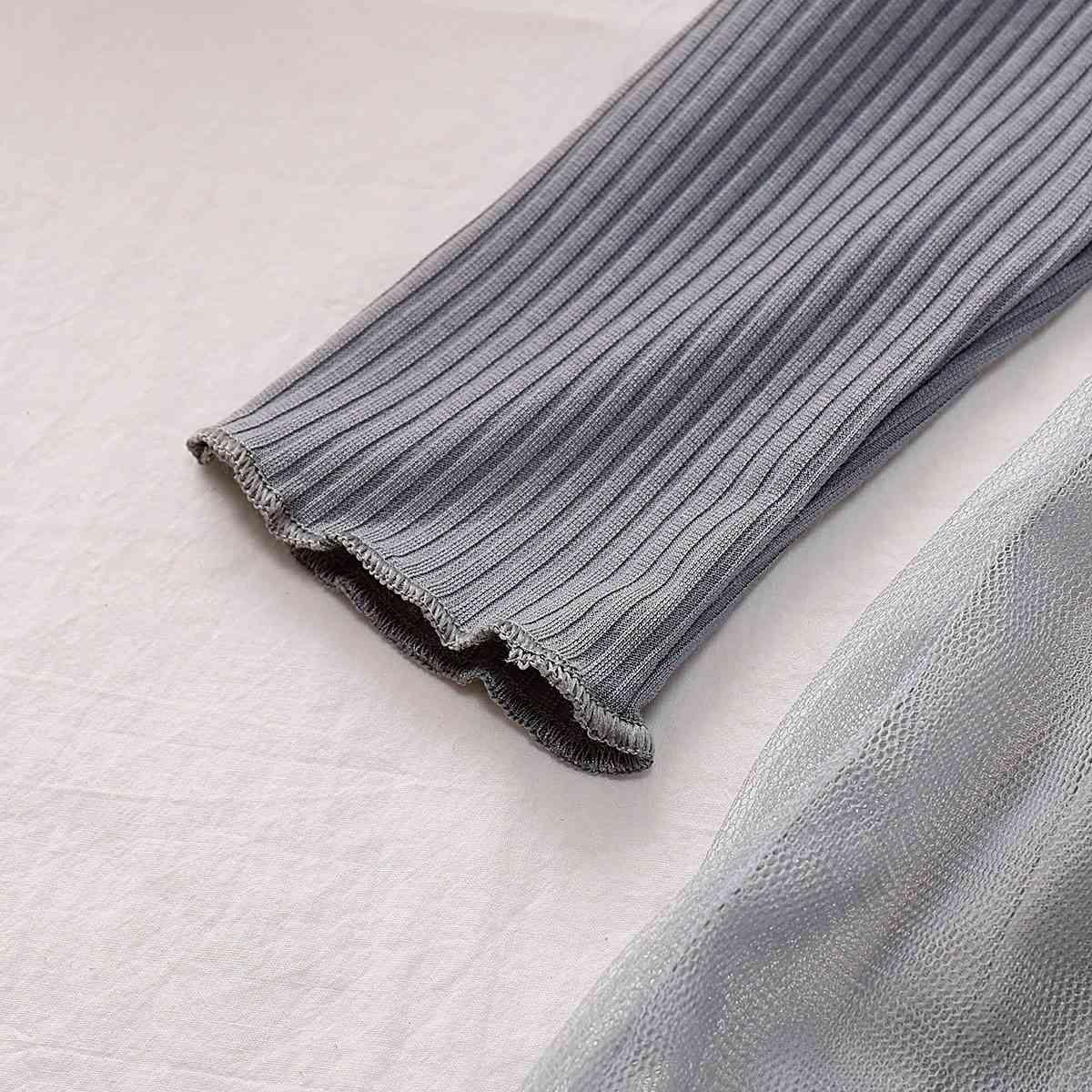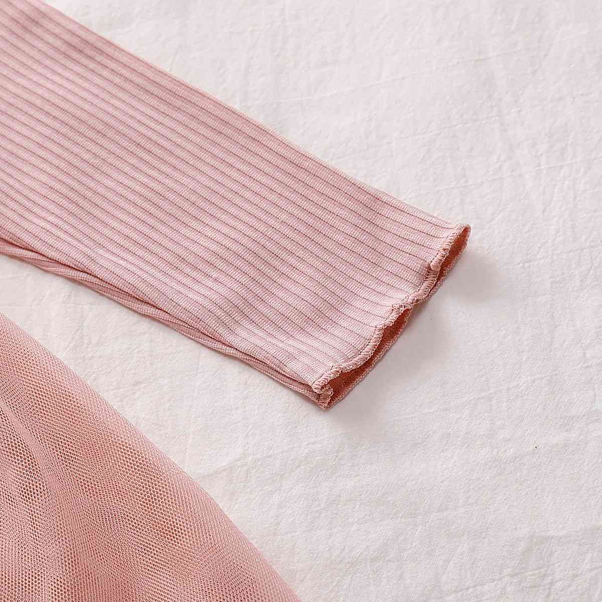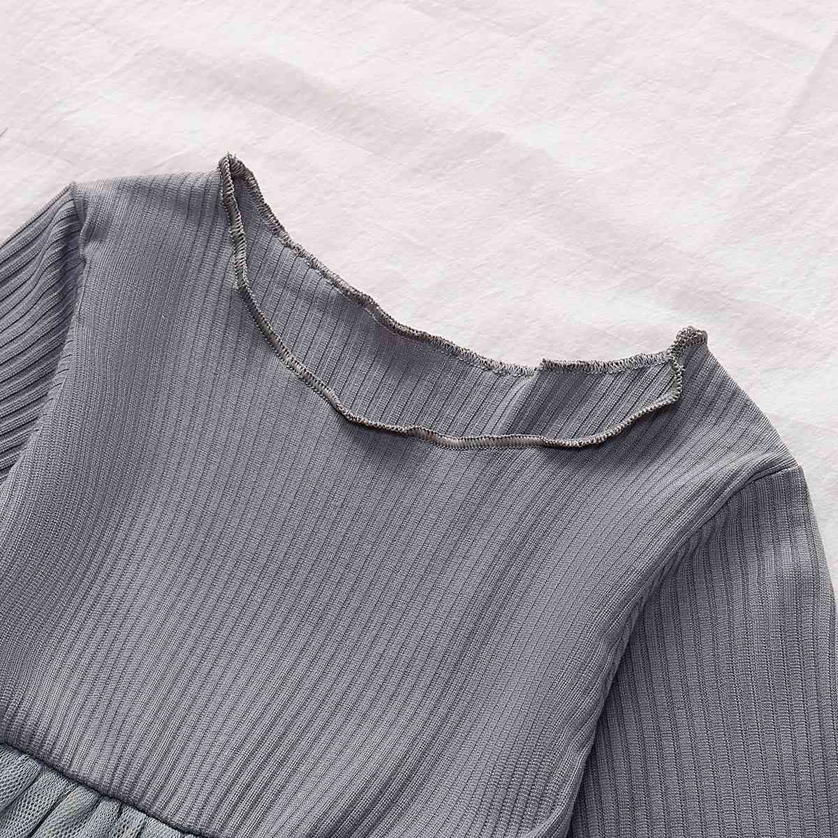 Girls Round Neck Ribbed Tulle Dress