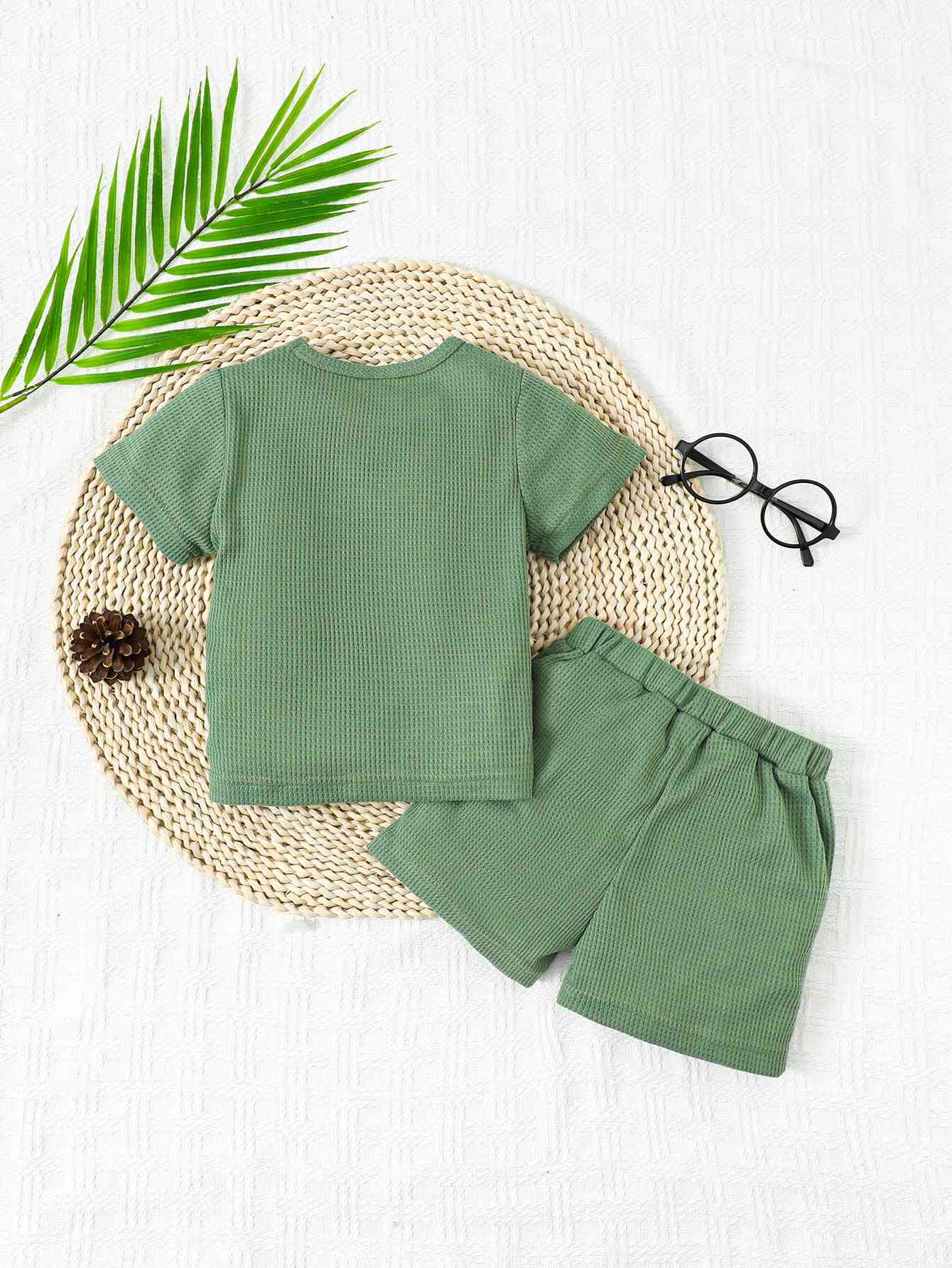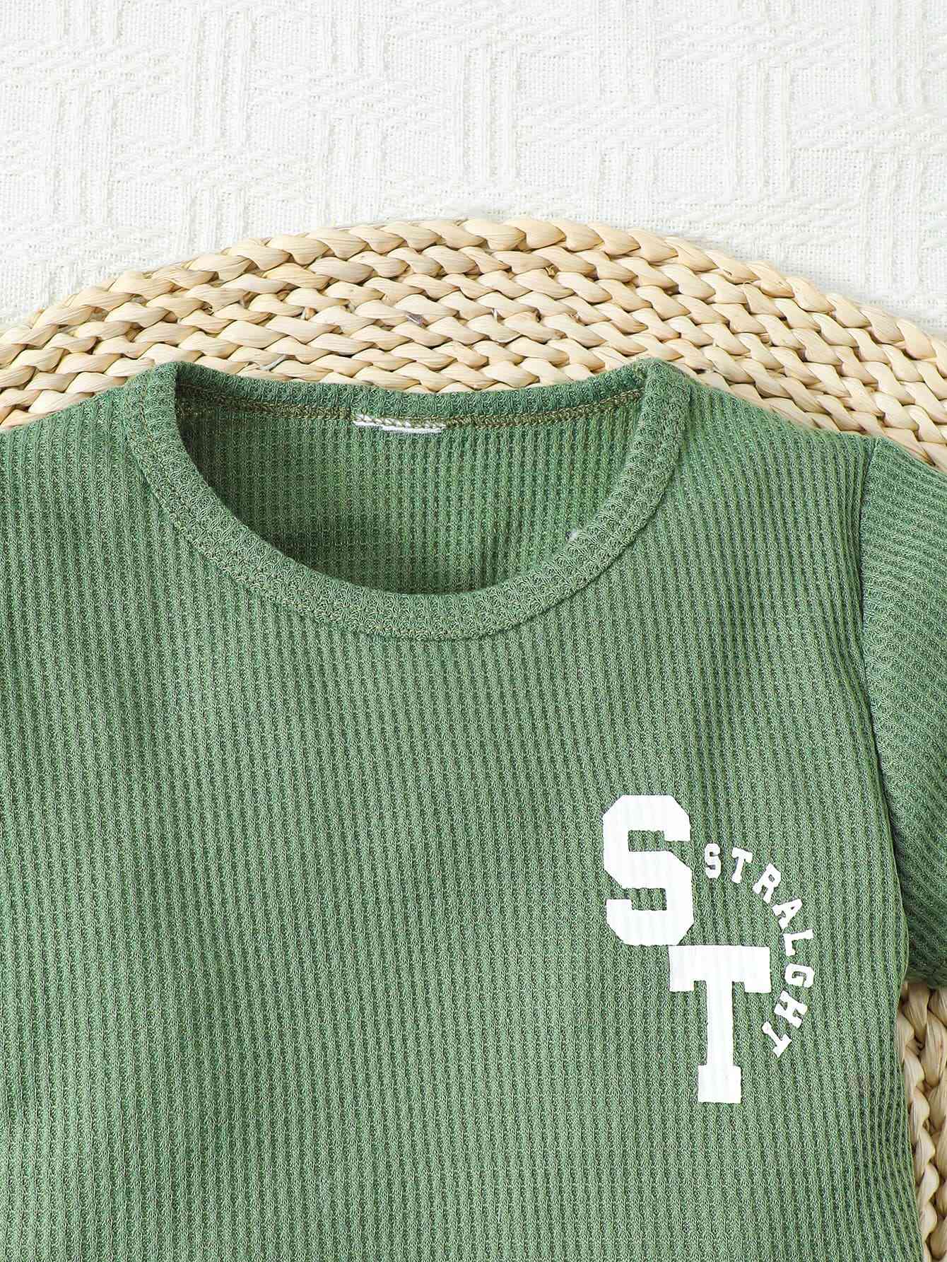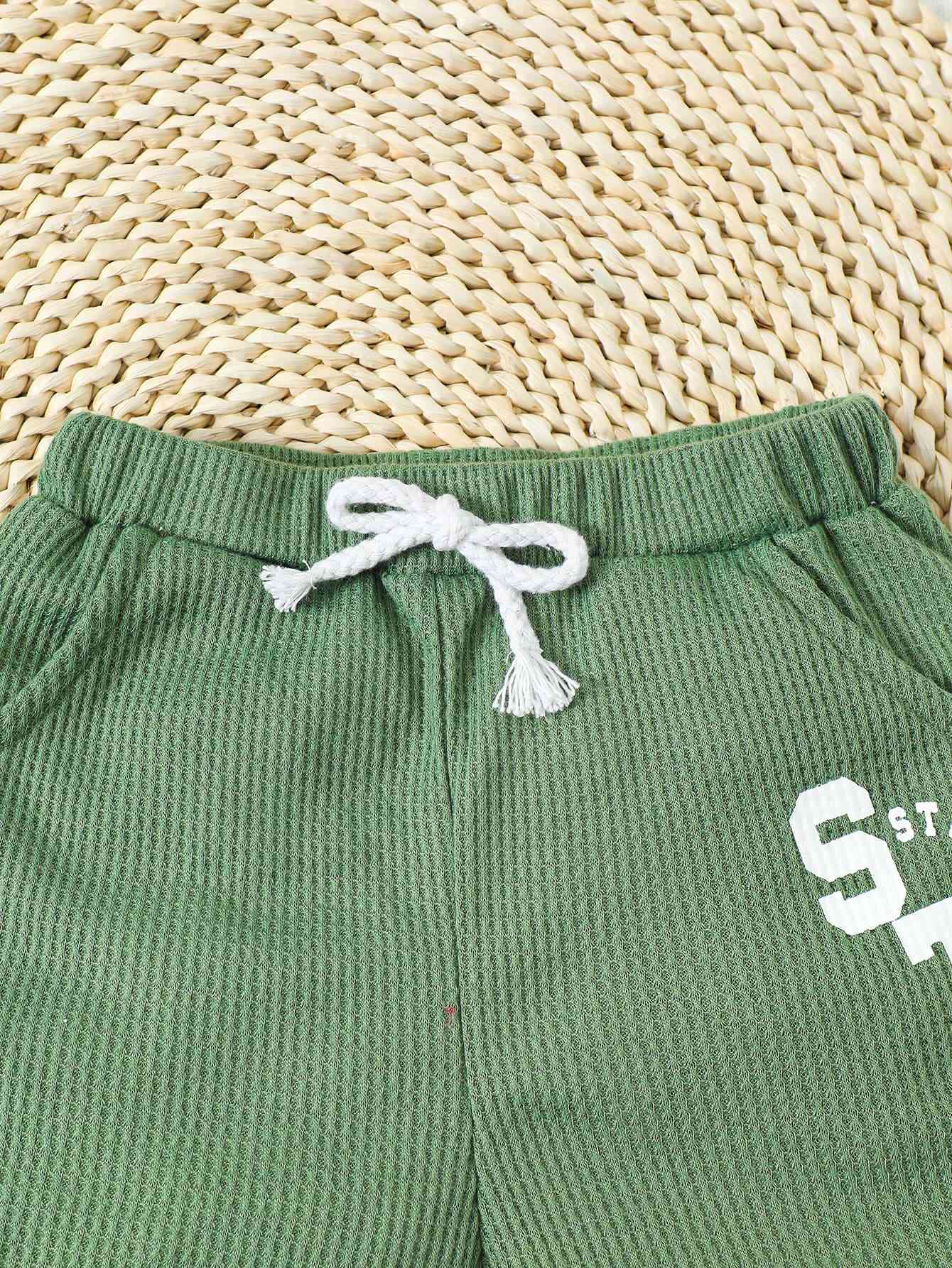 Graphic Waffle-Knit Round Neck Top and Shorts Set