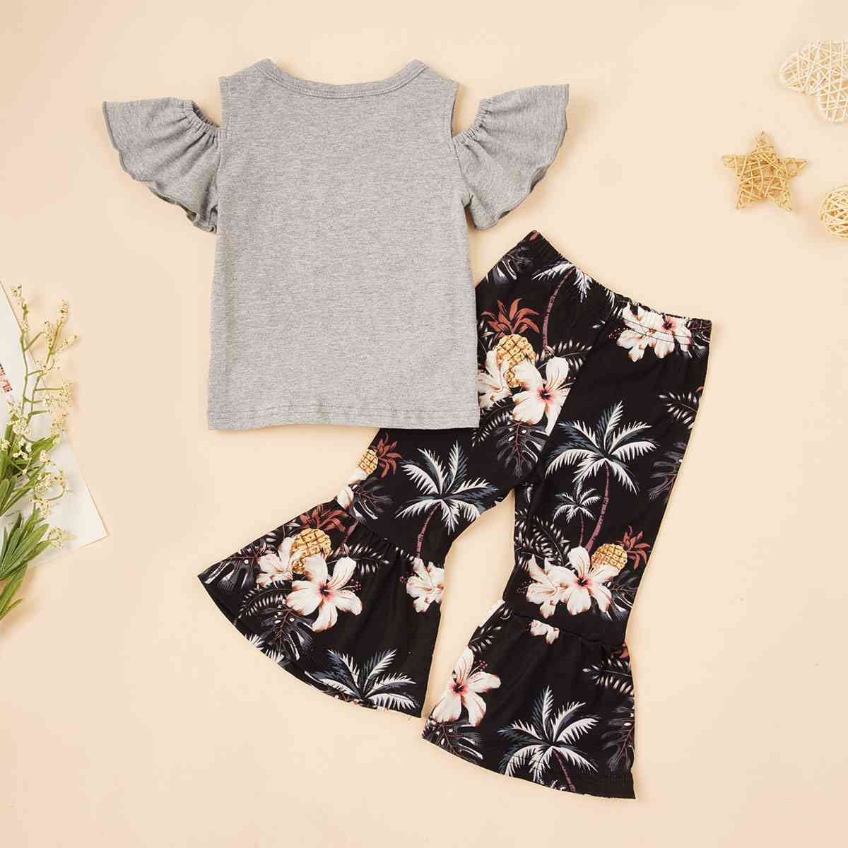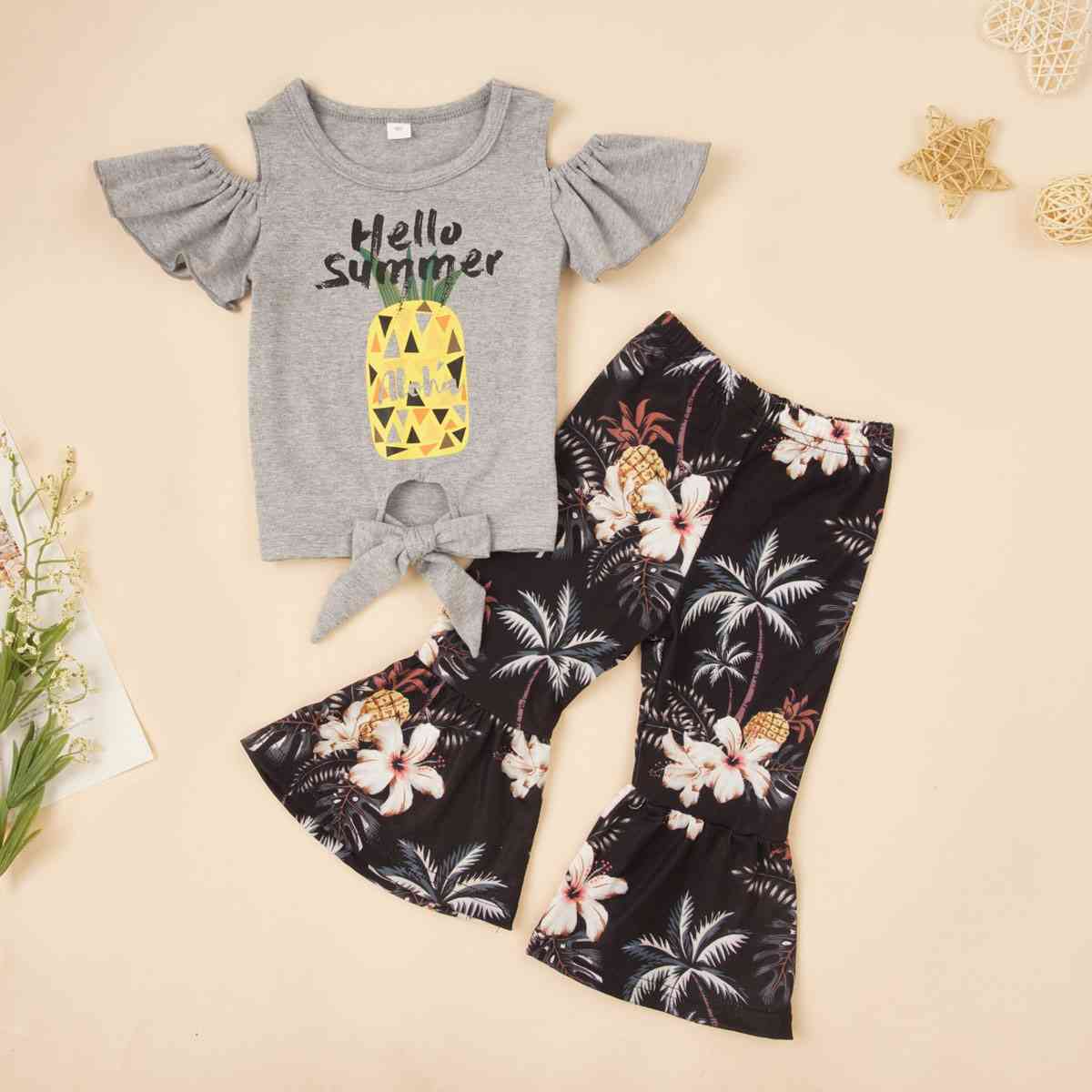 HELLO SUMMER Graphic Top and Floral Flare Pants Set