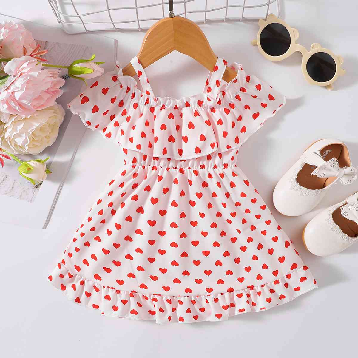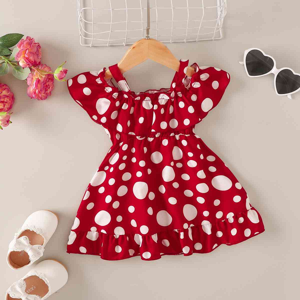 Printed Frill Trim Ruffle Hem Dress