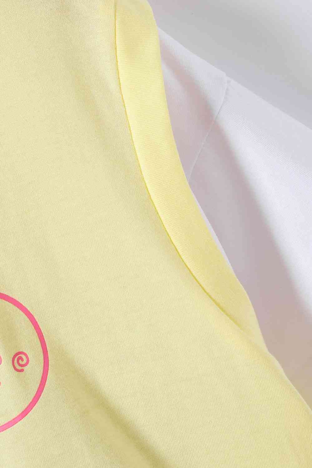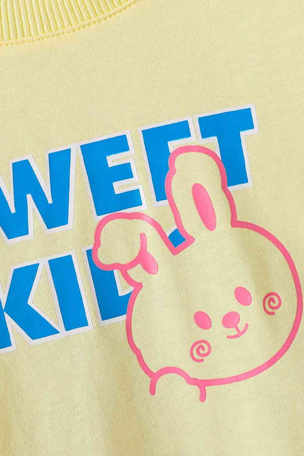 Rabbit Graphic Top and Elastic Waist Shorts Set