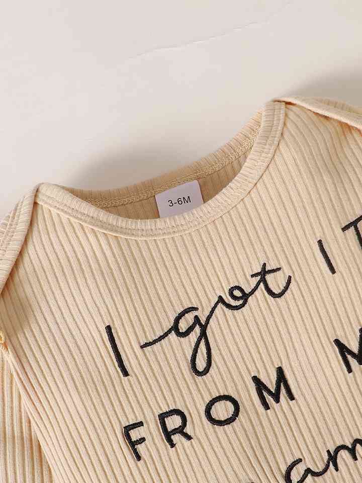 Ribbed Long Sleeve Top and Printed Skirt Set