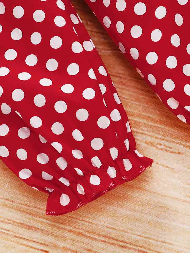 Round Neck Number One Graphic T-shirt and Polka Dot Pants Set