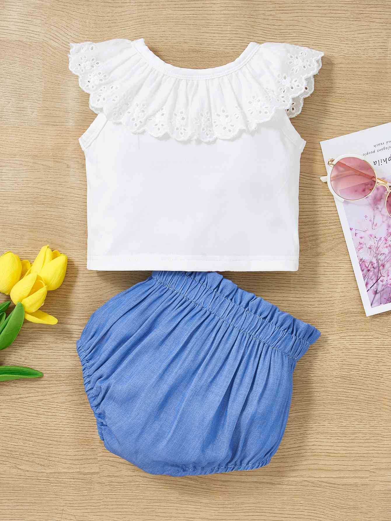 Children's Ruffle Trim Flower Top and Pants Set