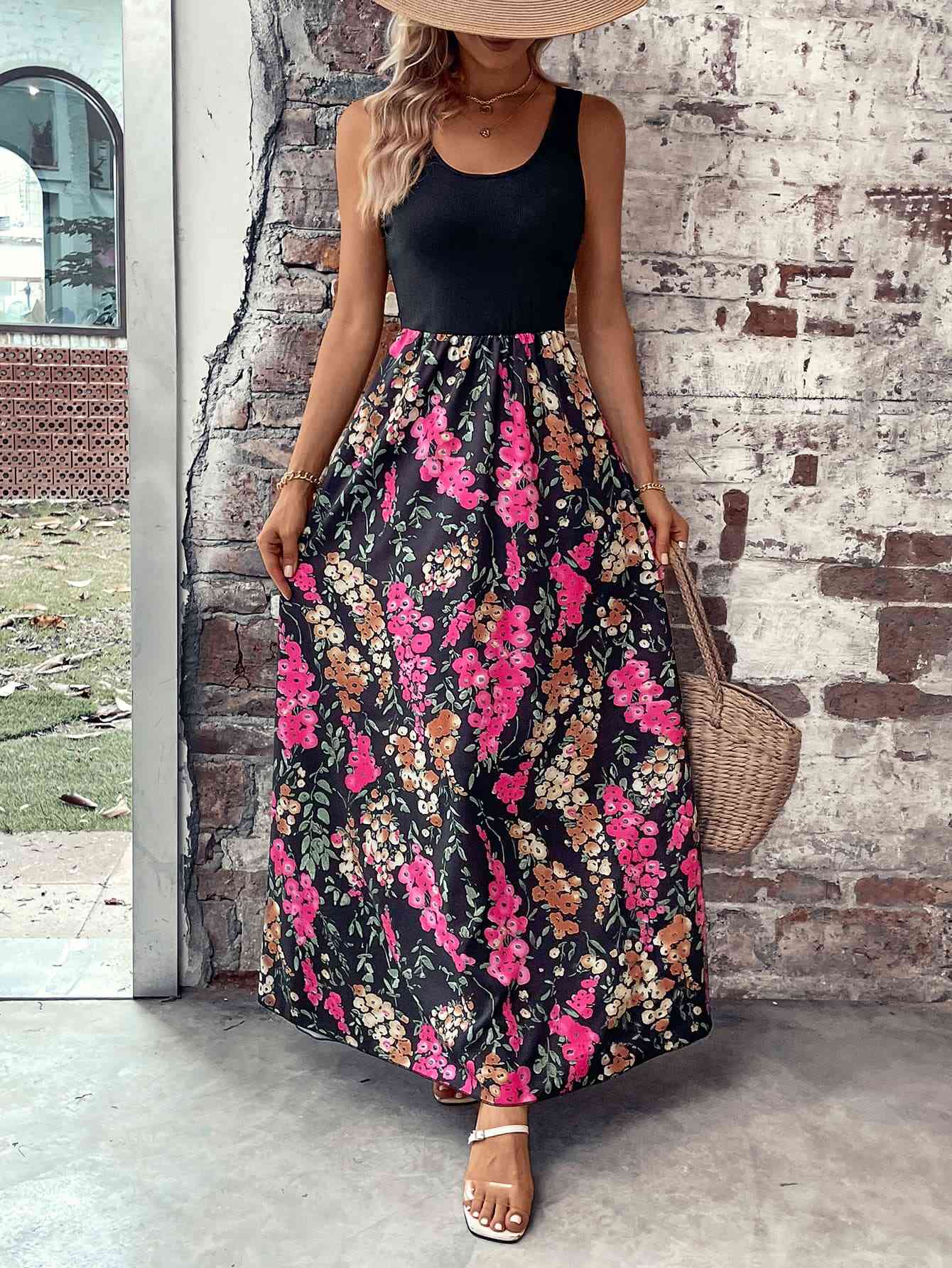 Plus Size Printed Notched Long Sleeve Maxi Dress