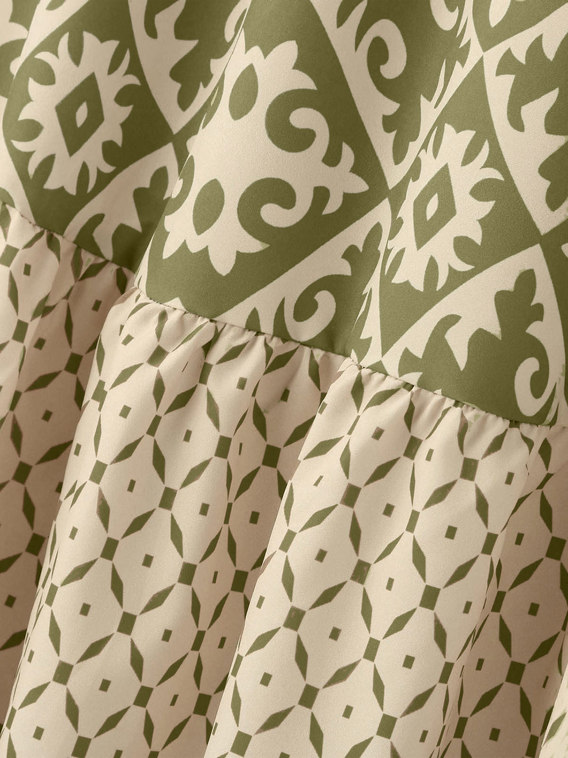 Plus Size Printed Notched Long Sleeve Maxi Dress