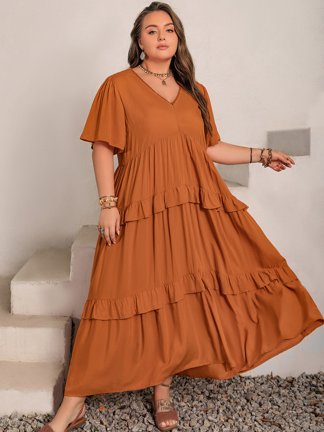 Plus Size V-Neck Flutter Sleeve Maxi Dress