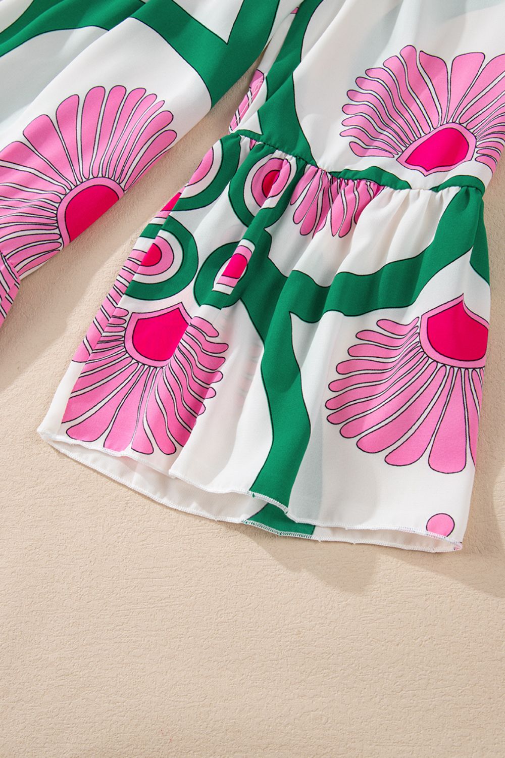 Plus Size Printed Notched Long Sleeve Maxi Dress