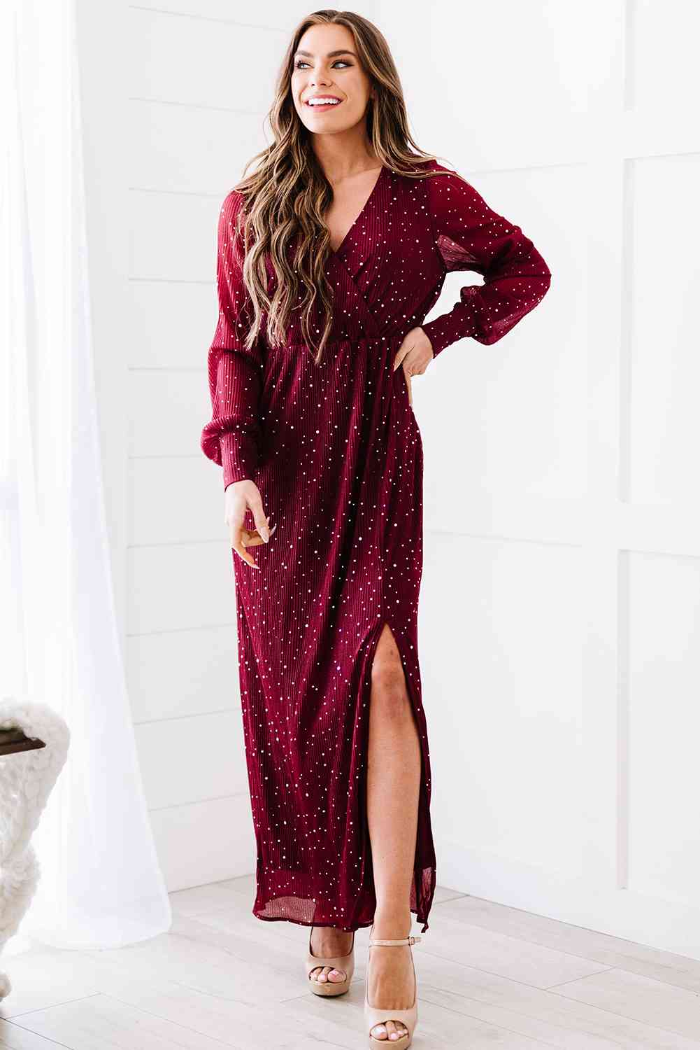Plus Size Printed Notched Long Sleeve Maxi Dress