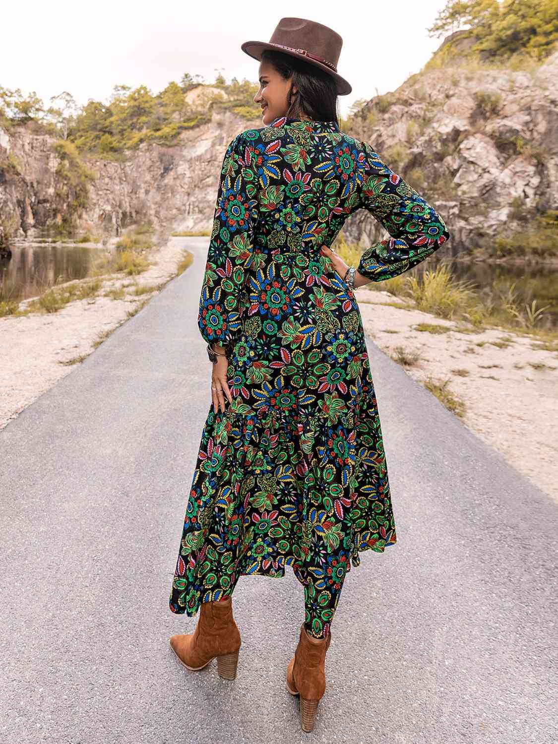 Printed Notched Neck Maxi Dress
