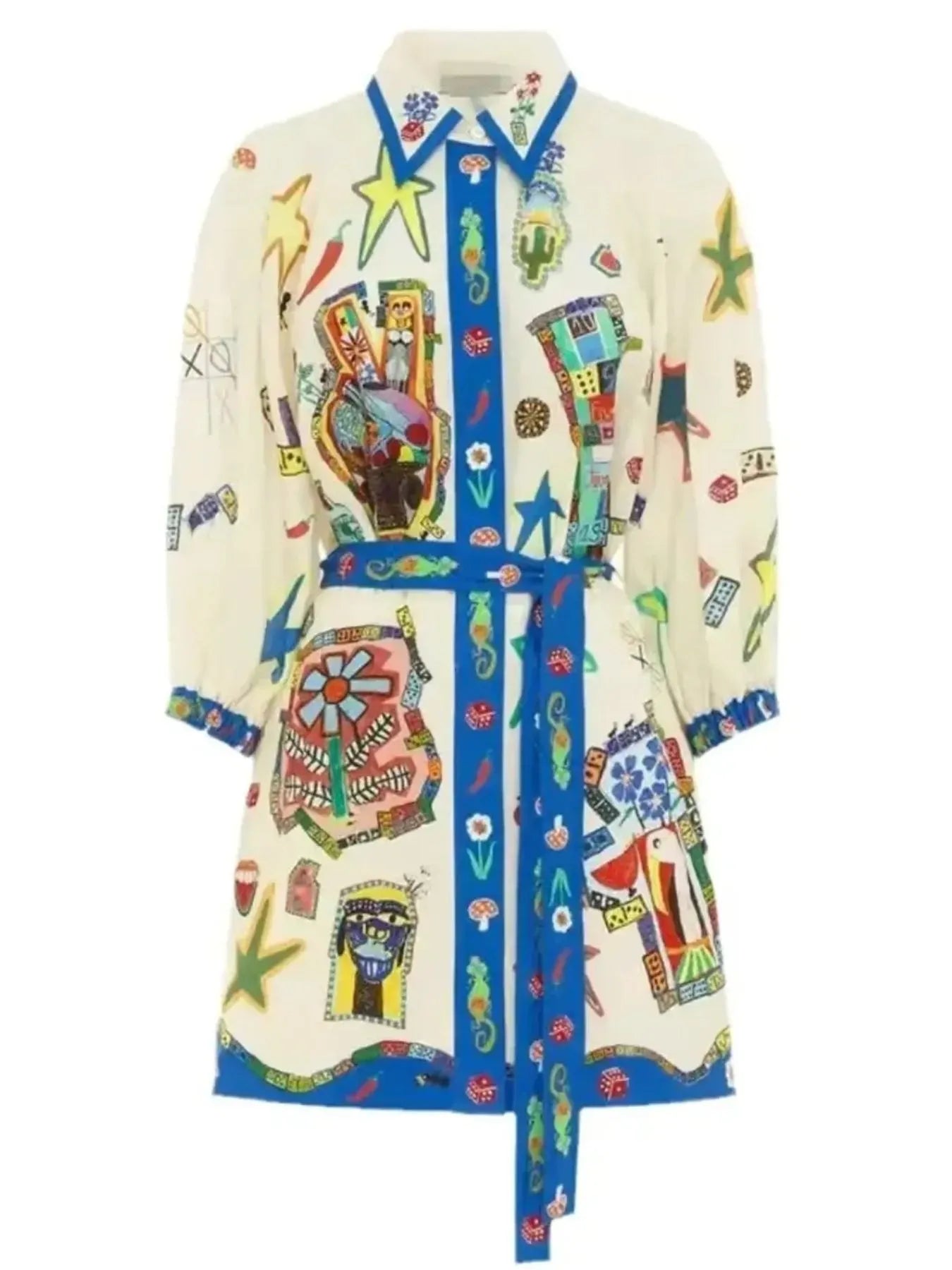 Printed Tie Waist Mini Shirt Dress