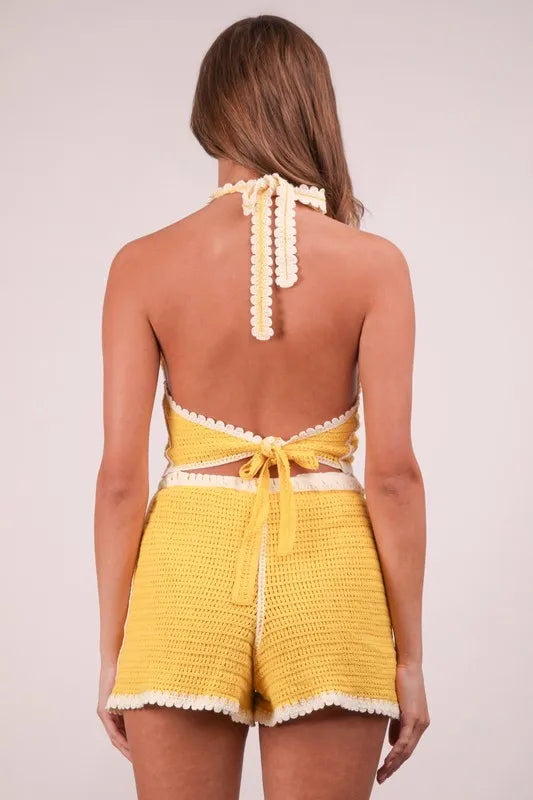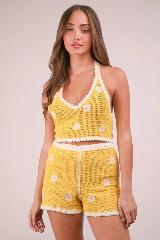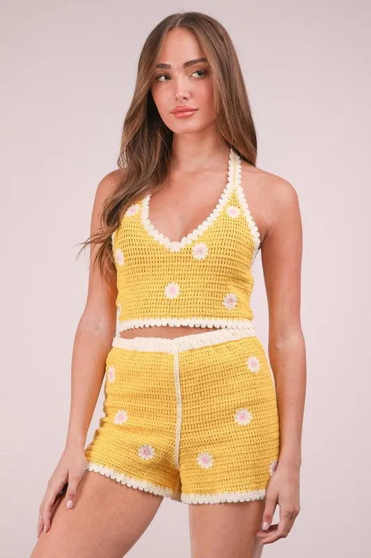 VERY J Floral Crochet Top and Shorts Set
