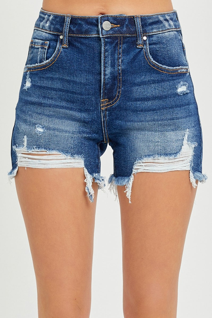 RISEN High Rise Distressed Denim Shorts