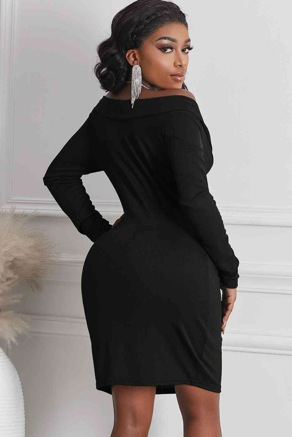 Long Sleeve Plunge Ribbed Bodycon Dress