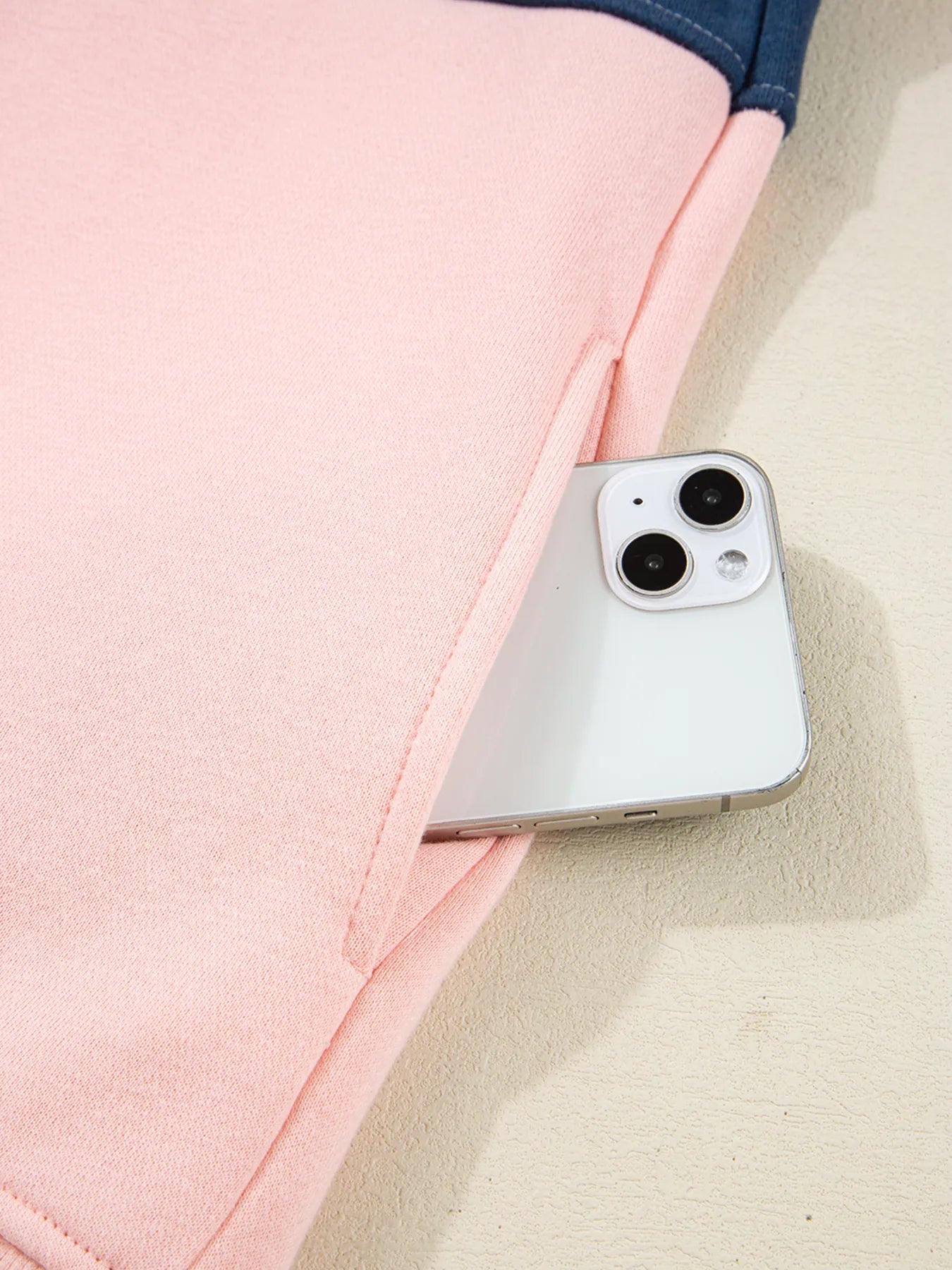 Colorblock Patchwork Half Button Baggy Sweatshirt