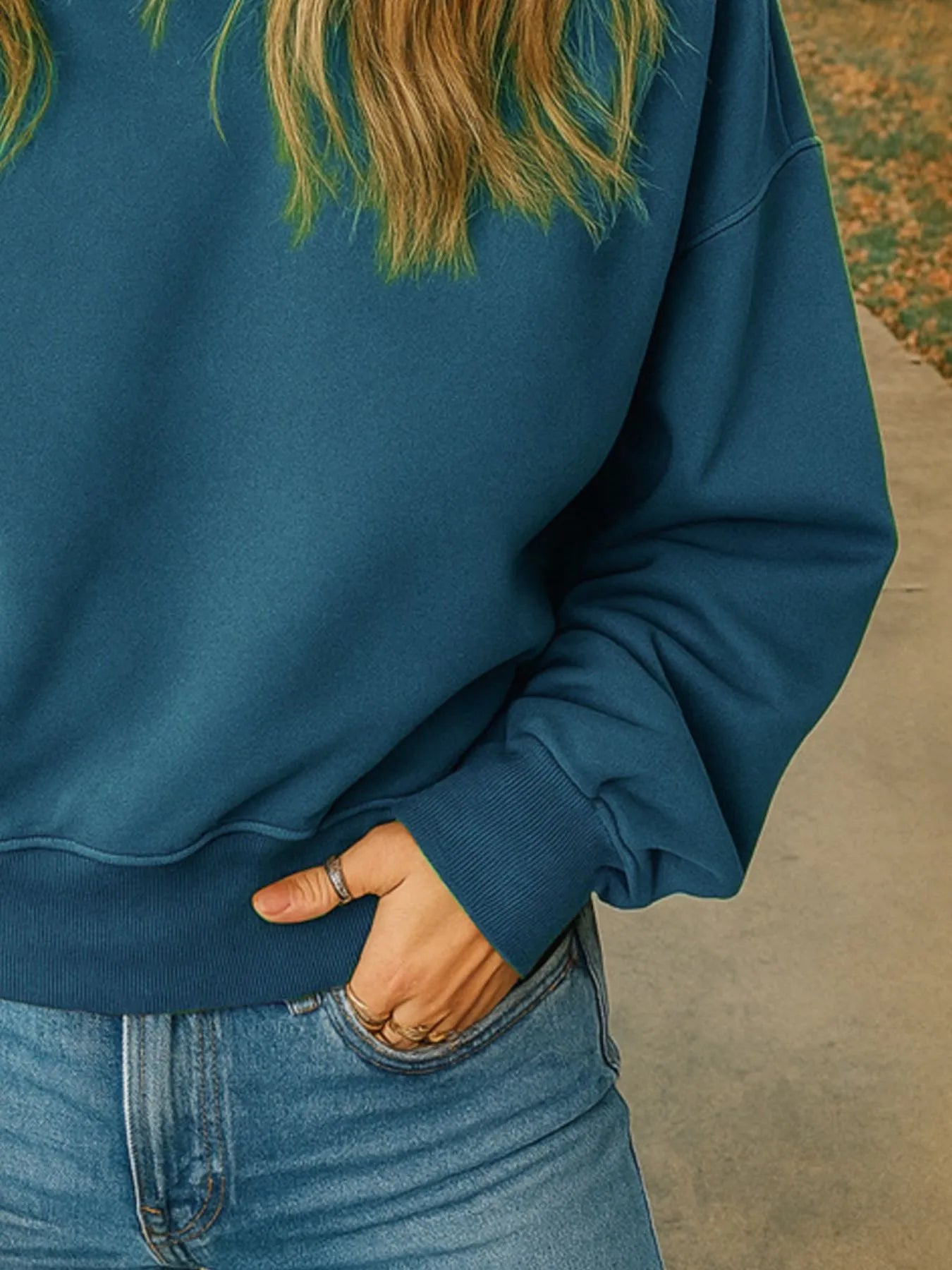 Full Size Basic style Round Neck Cropped Sweatshirt Plus Size