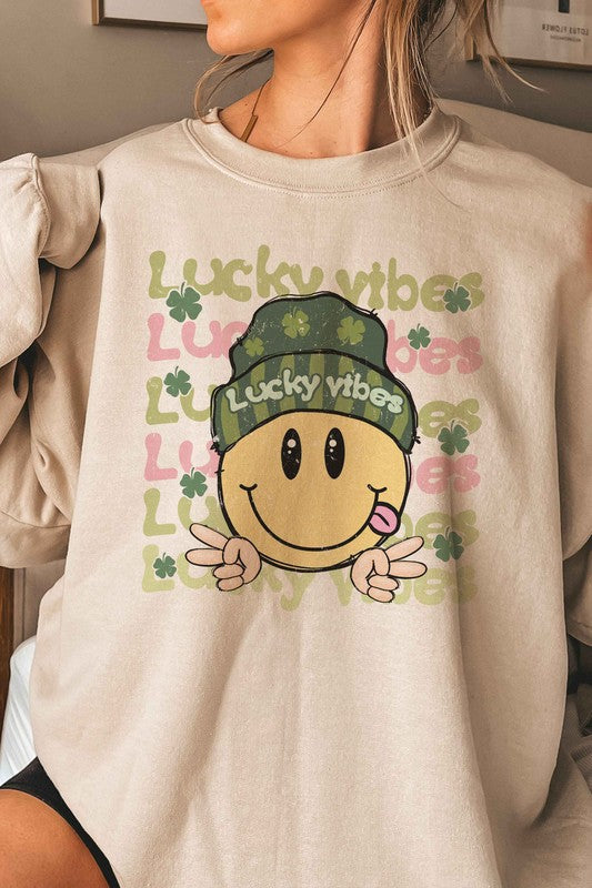LUCKY VIBES HAPPY FACE Graphic Sweatshirt