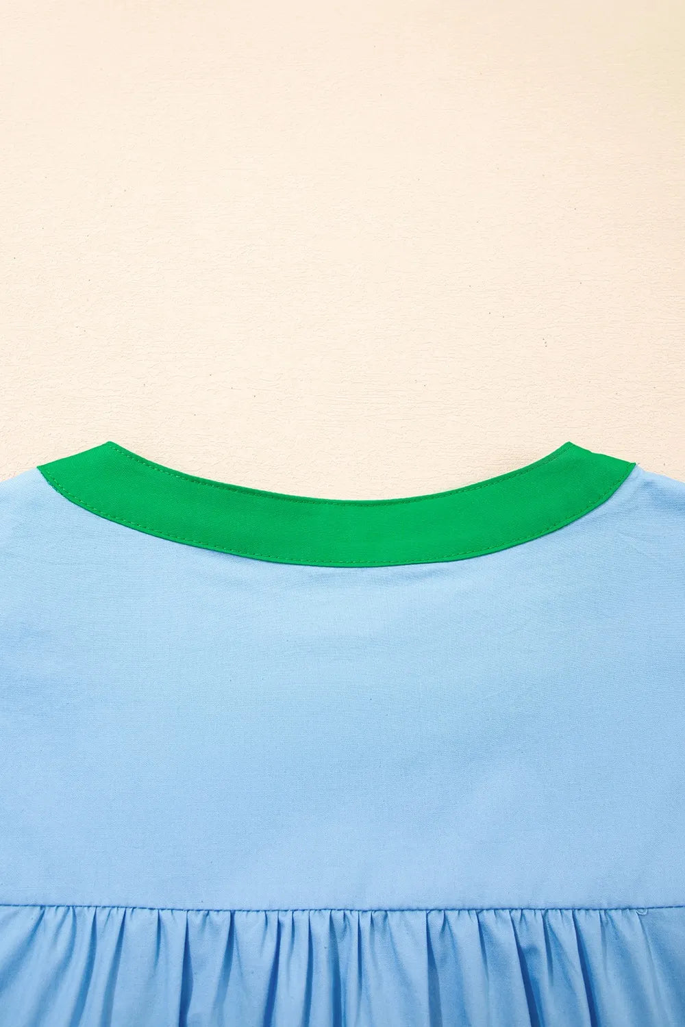Contrast Notched Neck Frilly Detail Short Sleeve Blouse