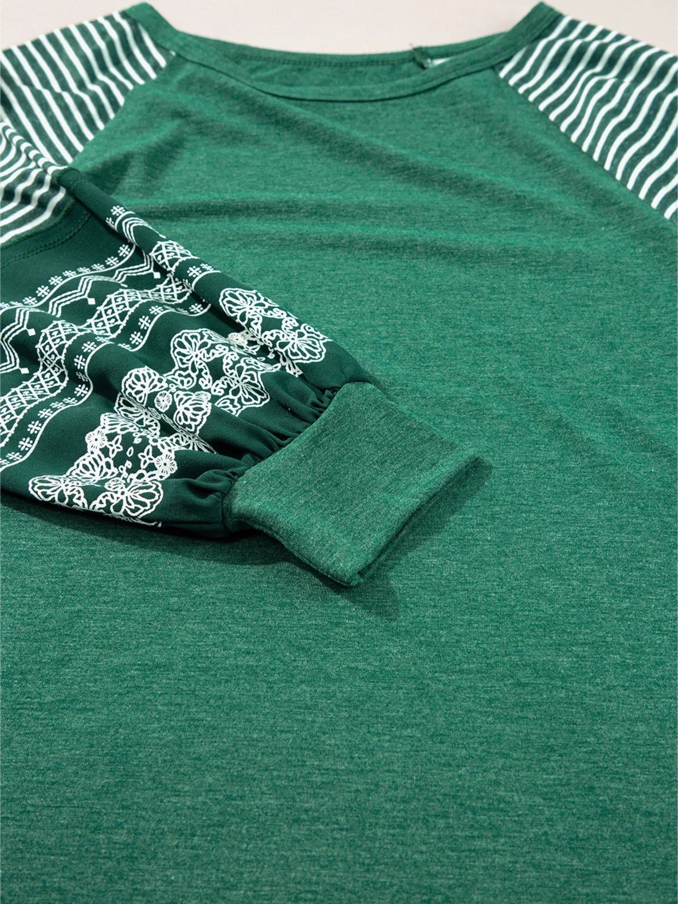 Contrast Print Striped Raglan Long Sleeve Loose Top