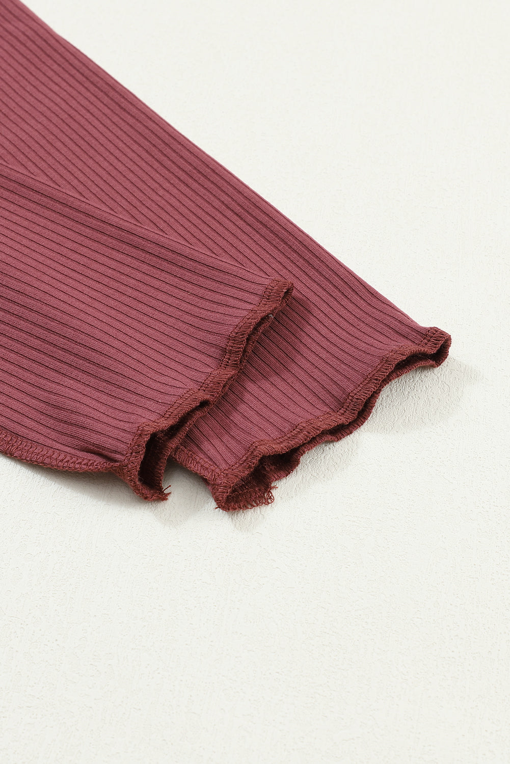 Velvet Ribbed Texture Square Neck Slim Puff Sleeve Top