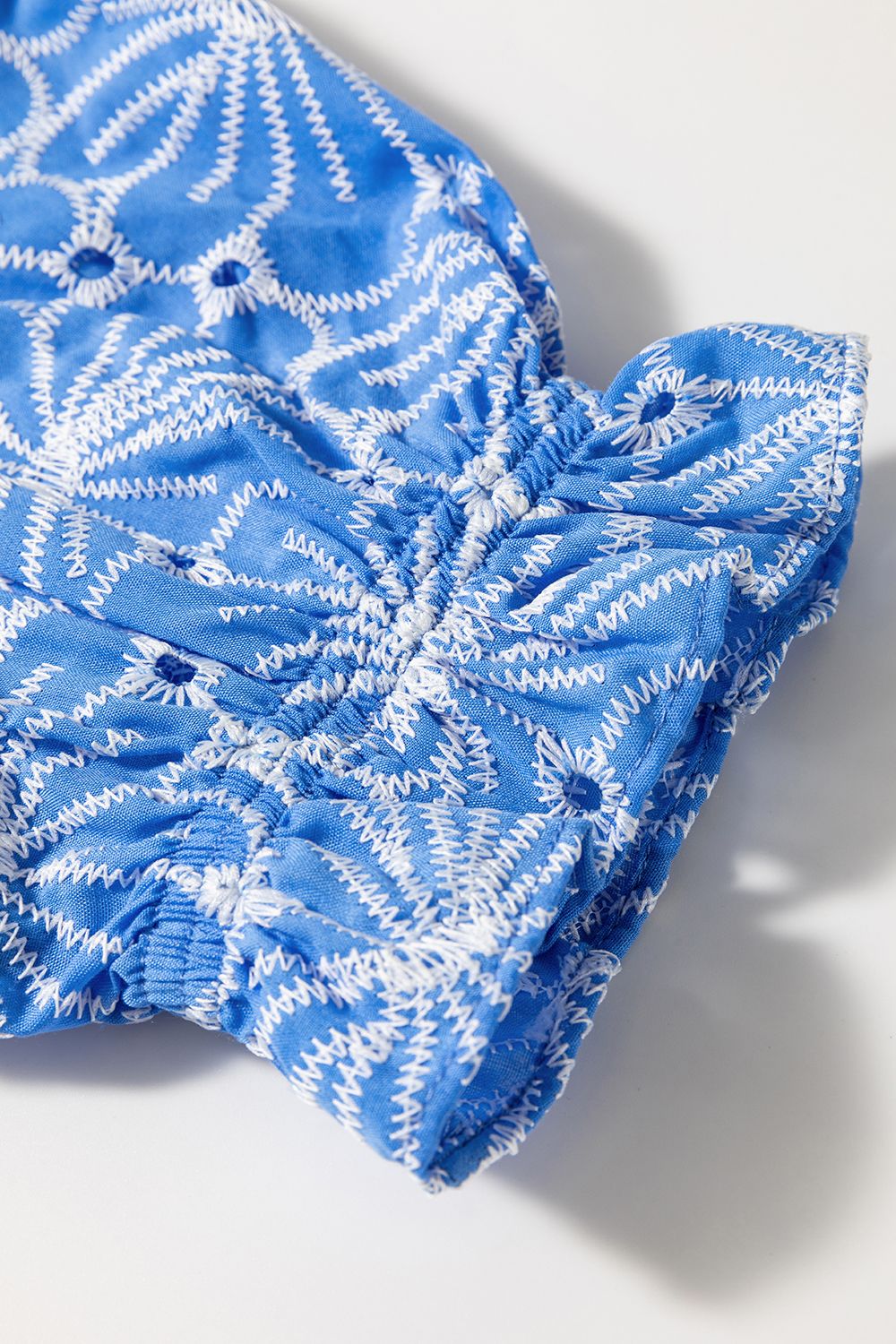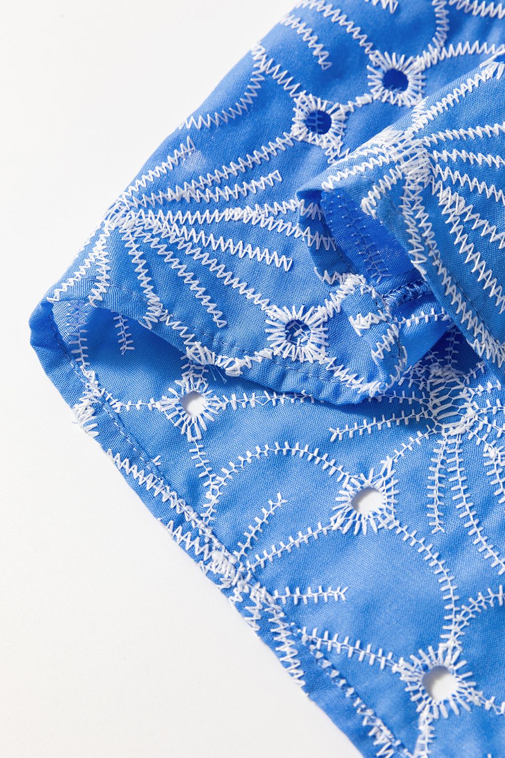 Eyelet Flower Embroidery Flounce Sleeve Blouse