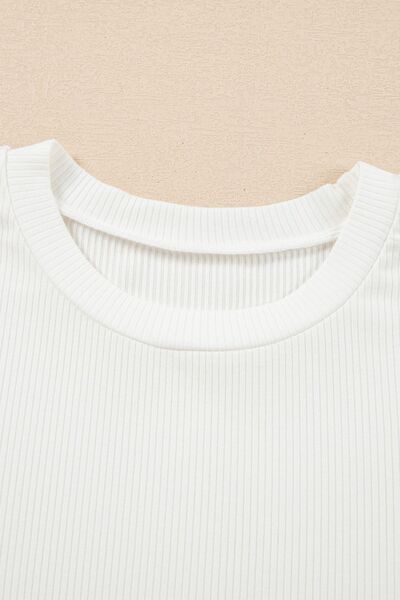 Eyelet Short Sleeve Patchwork Ribbed Top