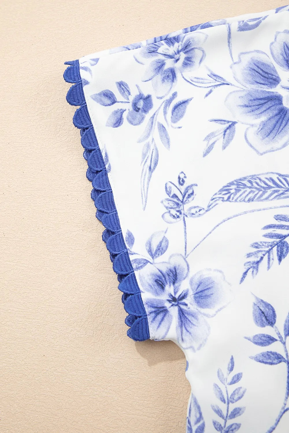Floral Print Ricrac Trim Short Sleeve Blouse