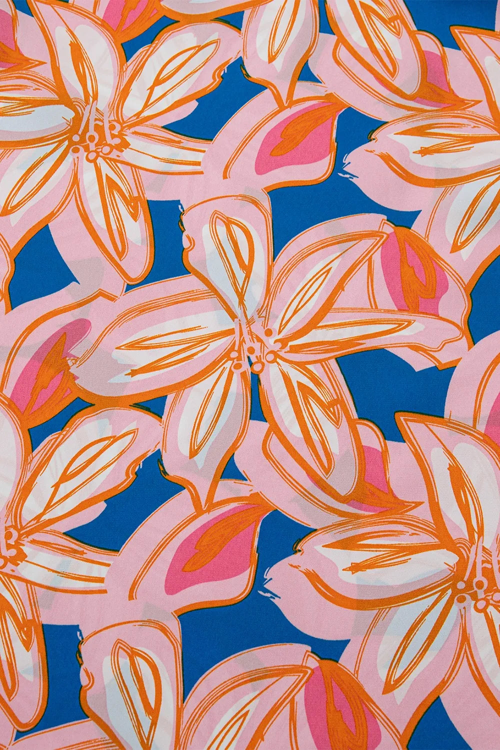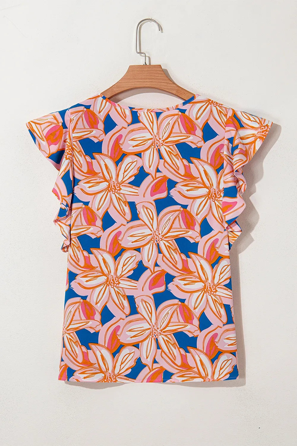 Flower Print Notched Neck Ruffle Sleeve Blouse