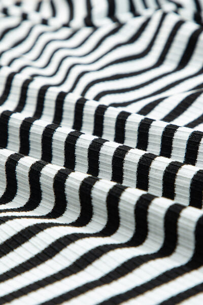 Striped Contrast Scallop Trim Half Sleeve T-shirt