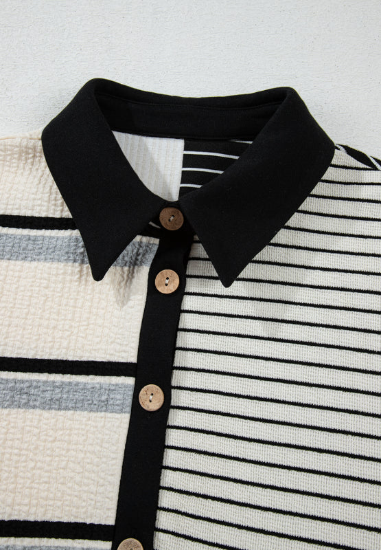 Striped Button-Up Knit Cardigan