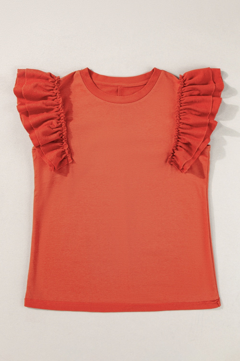Ruffled Printed V-Neck Cap Sleeve Blouse