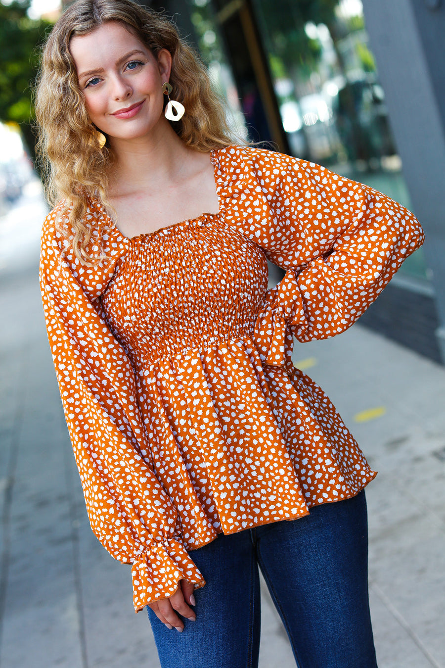 Rust & Berry Abstract Print Babydoll Air Flow Woven Top