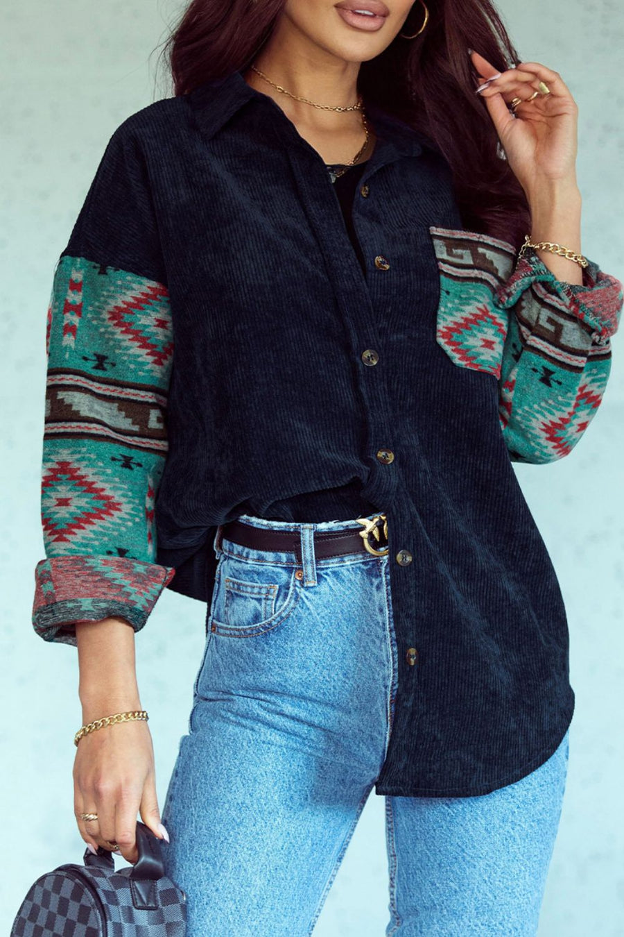 Pocketed Checkered Button Up Long Sleeve Jacket