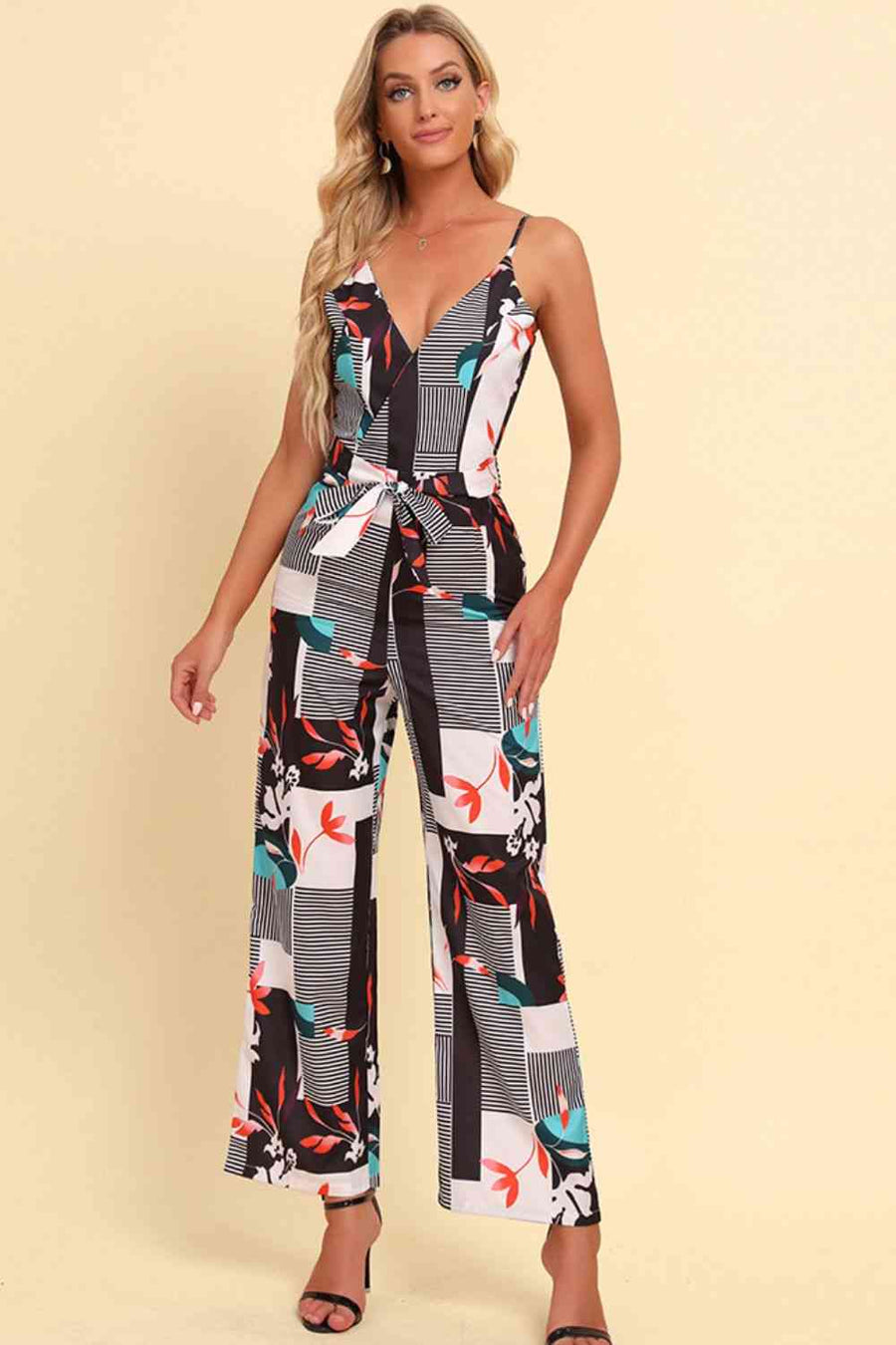 Printed Spaghetti Strap Wide Leg Jumpsuit