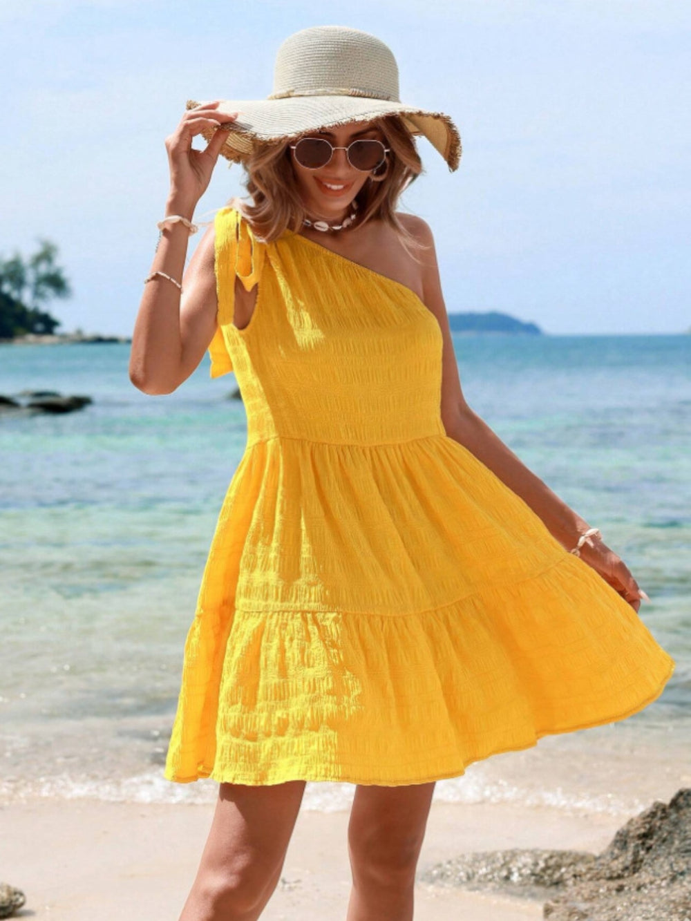Tied Ruffled Off-Shoulder Short Sleeve Romper