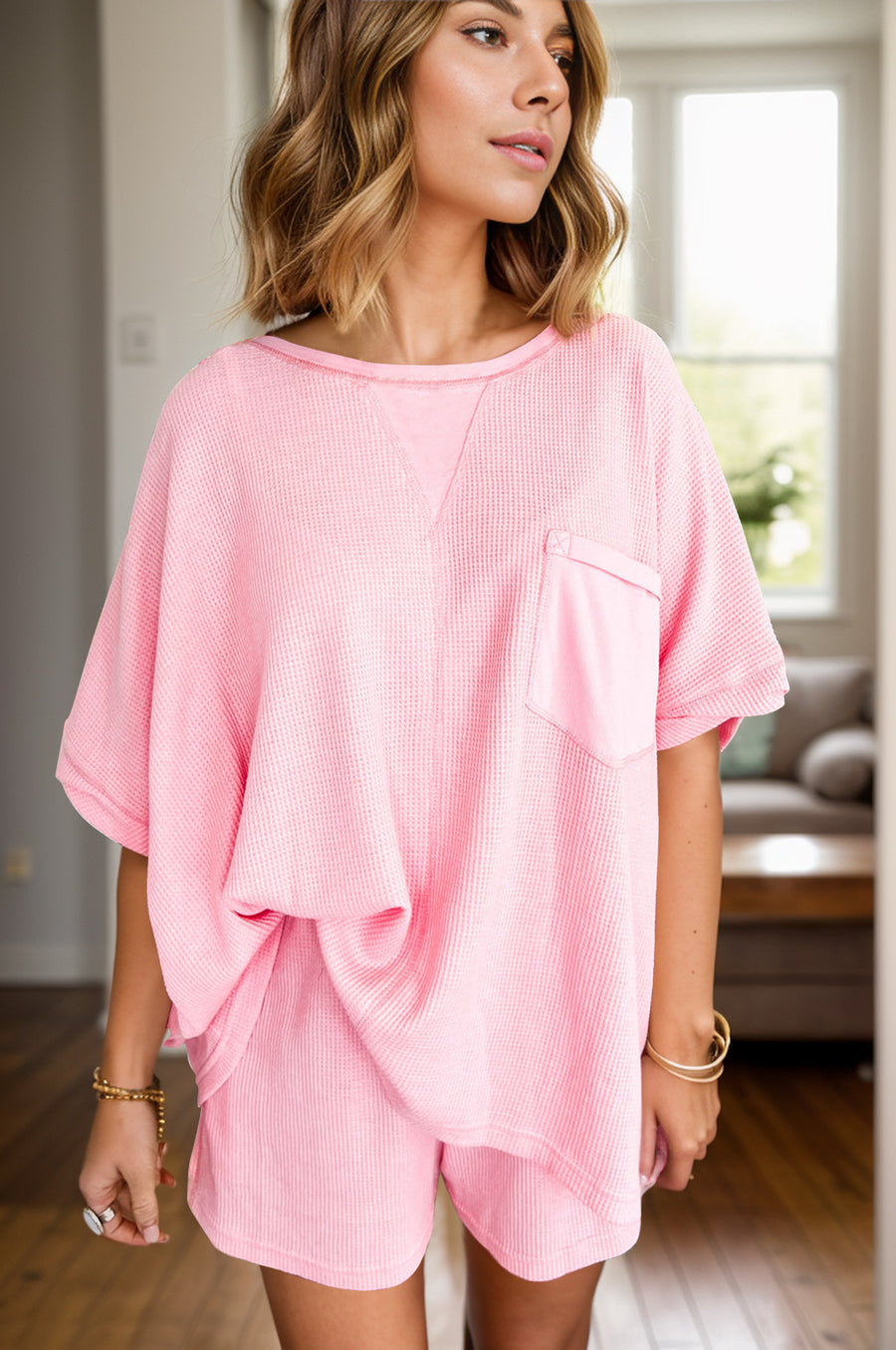 Waffle-Knit Short Sleeve Top and Shorts Lounge Set