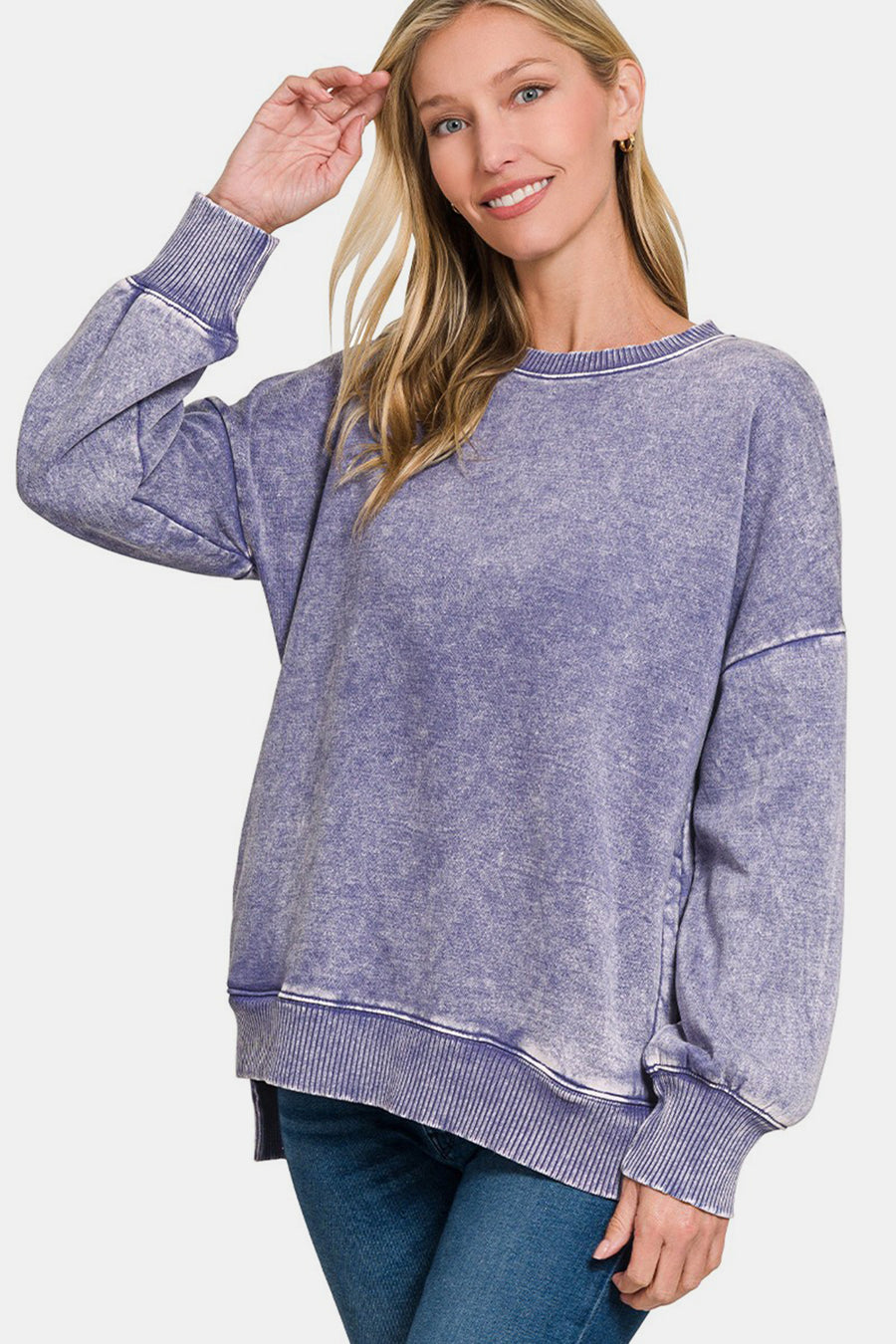 Zenana Pigment Dye Fleece Hi-low Hem Sweatshirt With Pocket
