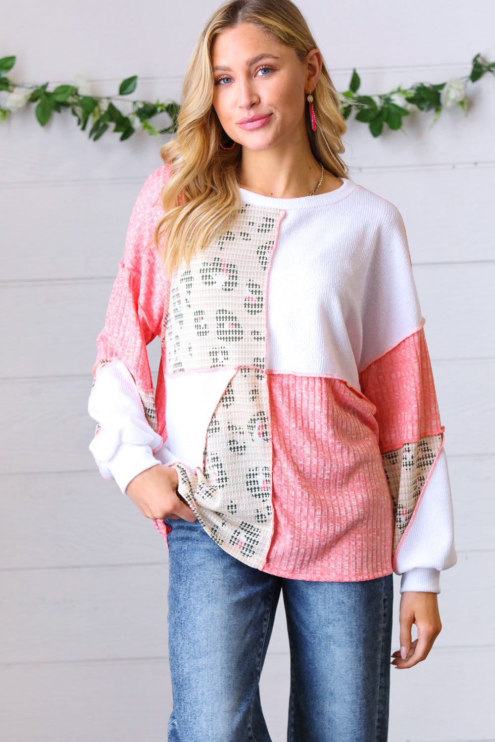 Coral & Peach Boho Patchwork Babydoll Woven Top