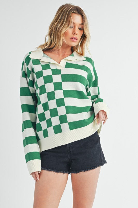 Aemi + Co Striped & Checkered Drop Shoulder Sweater